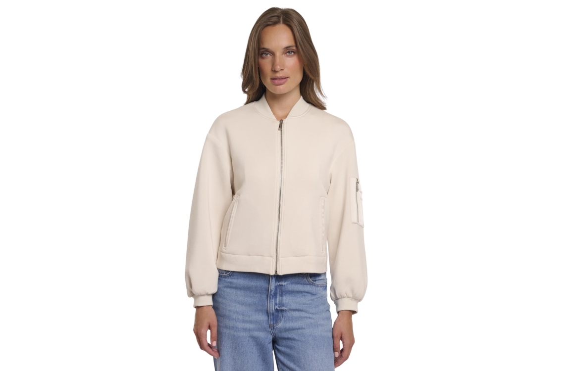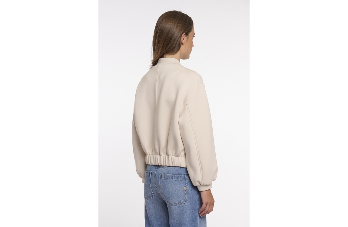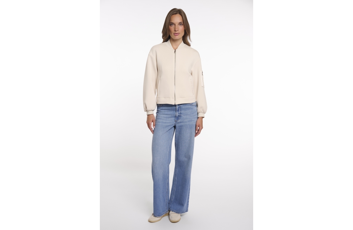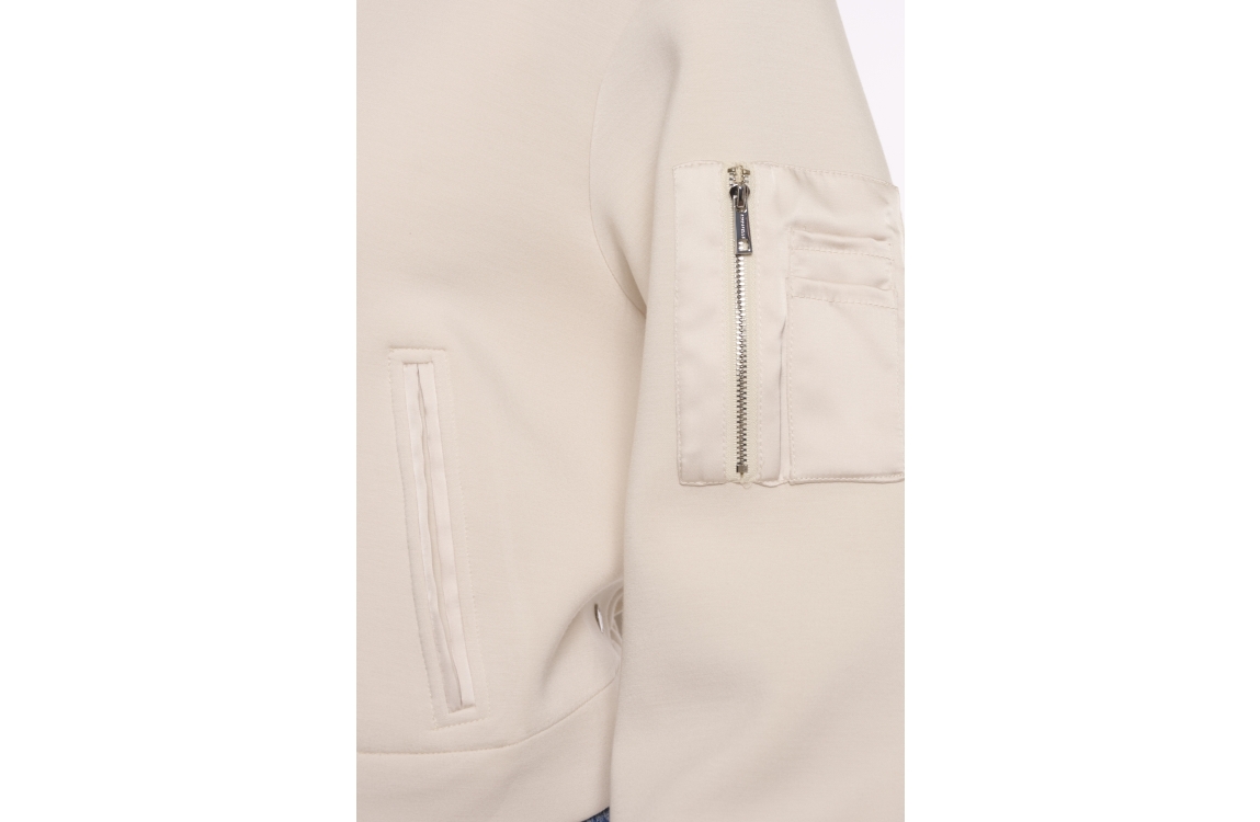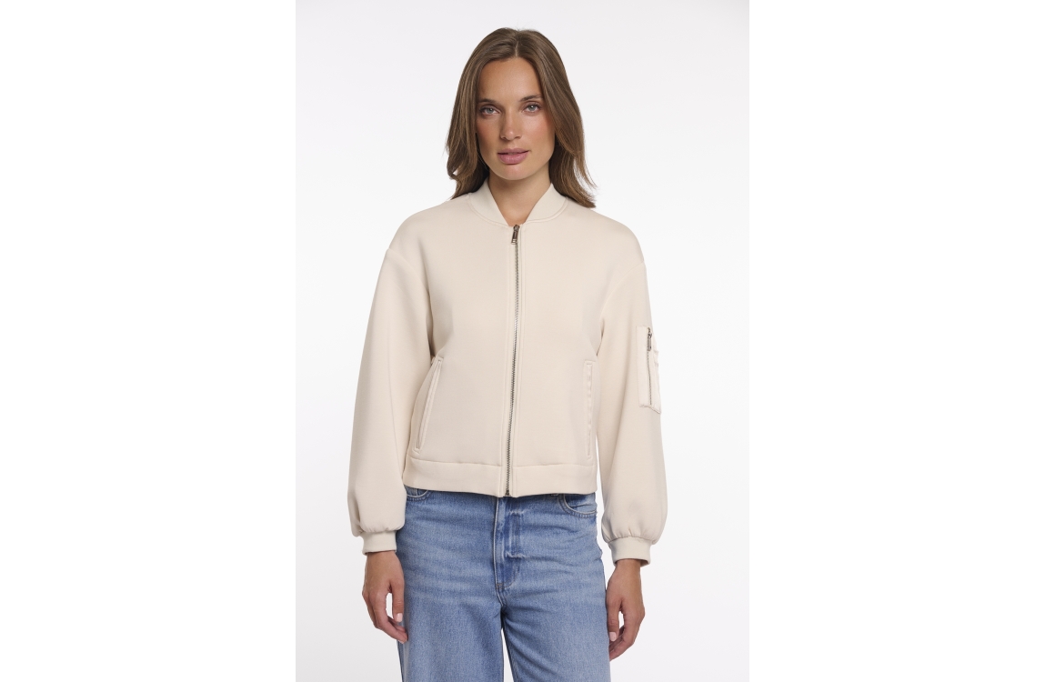 Rino en Pelle bomber Noon 7002621. Dit soepelvallend model heeft een ronde hals, lange mouwen en sluit door middel van een rits. Deze beige bomber van Rino en Pelle beschikt over verschillende jaszakken en is uitgevoerd in een skuba materiaal.