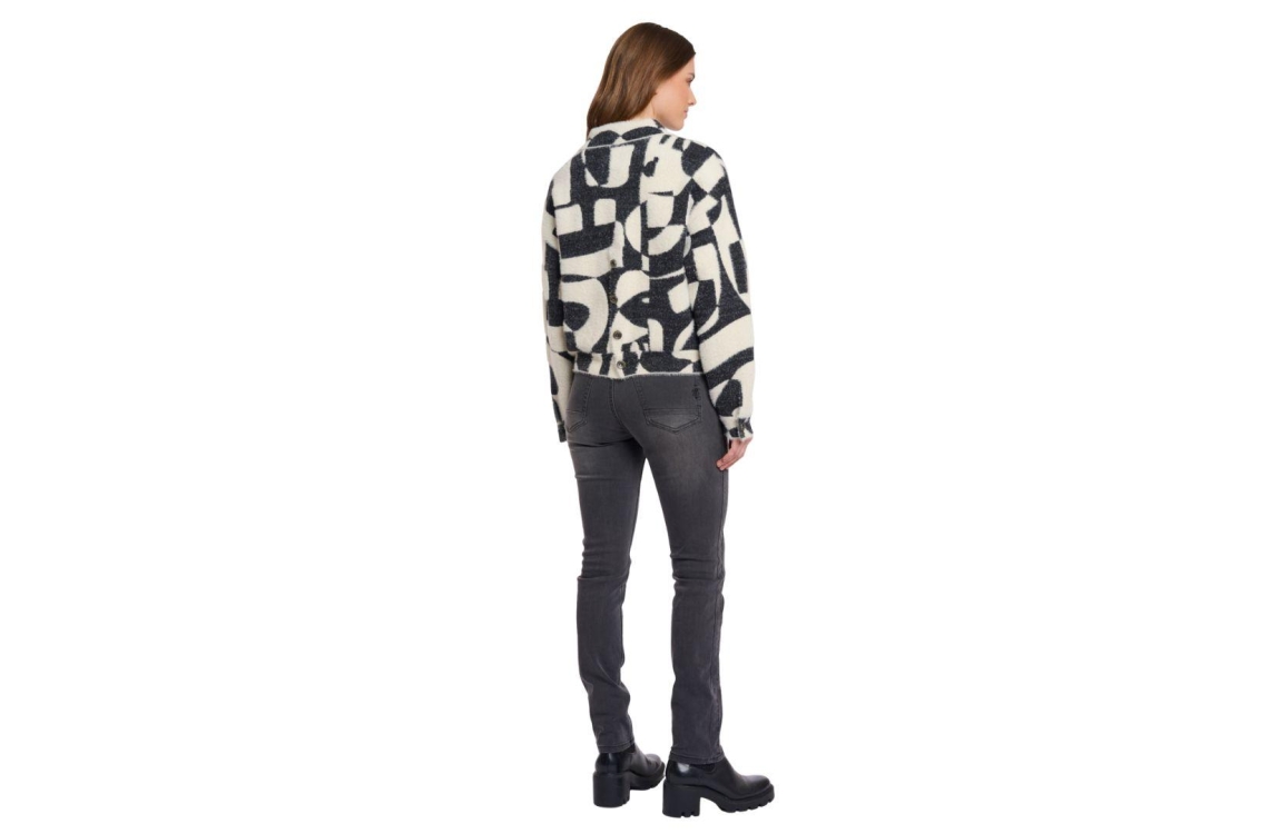 Rino en Pelle jasje Bubbly 5012511. Dit rechtvallende model heeft een omgeslagen kraag en lange mouwen. Deze off white jas van Rino en Pelle is all-over bewerkt met een grafische print en sluit aan de voorzijde door middel van knopen. Het model is voorzien van twee opgestikte zakken en ceintuurlussen op de zoom.