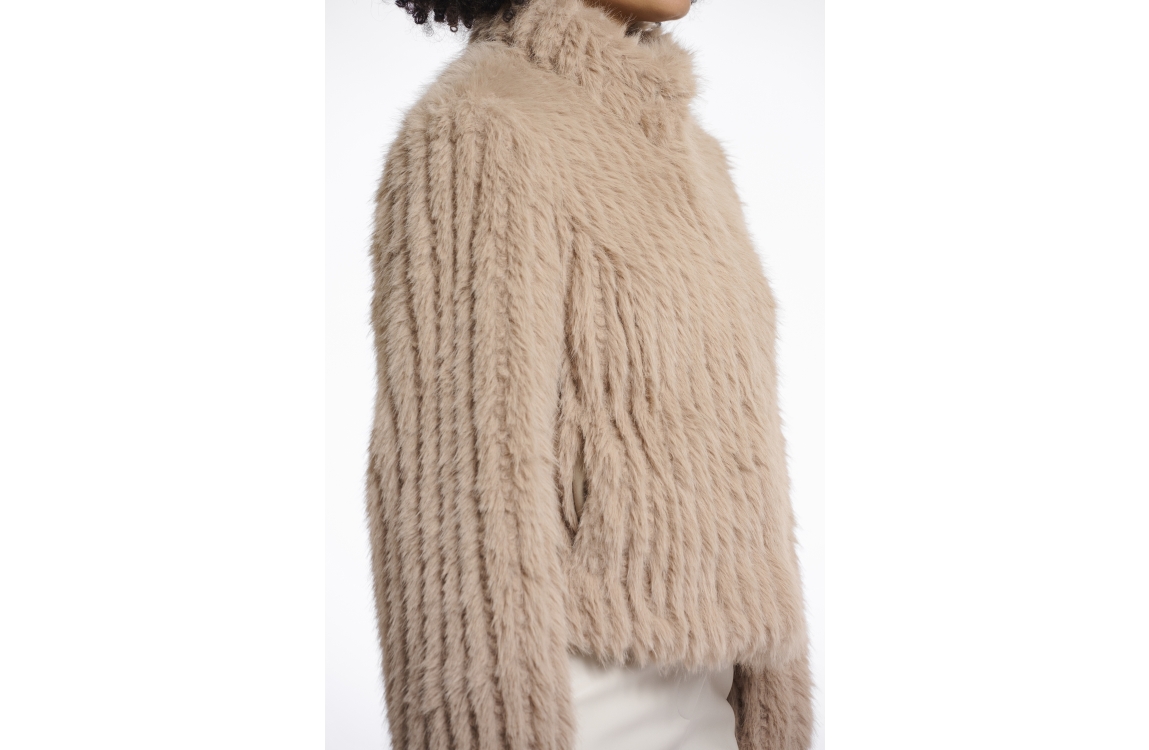 Rino en Pelle Jacket with closure 10866 oat. Dit rechtvallende model heeft een opstaande kraag en lange mouwen. Deze licht bruine jas van Rino en Pelle sluit aan de voorzijde door middel van drukknopen en is uitgevoerd in fluffy stof. Het model beschikt over twee steekzakken en is gevoerd.