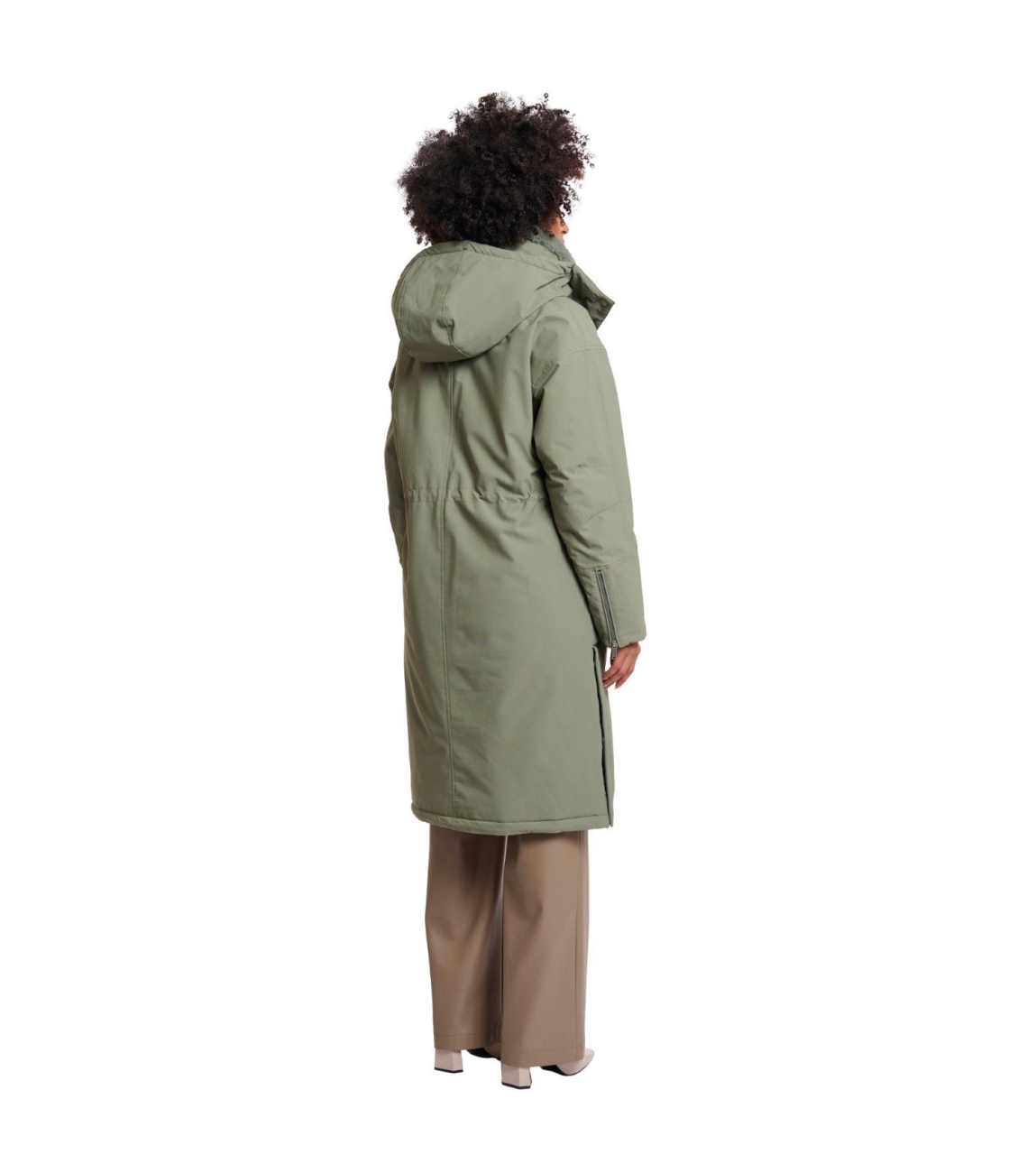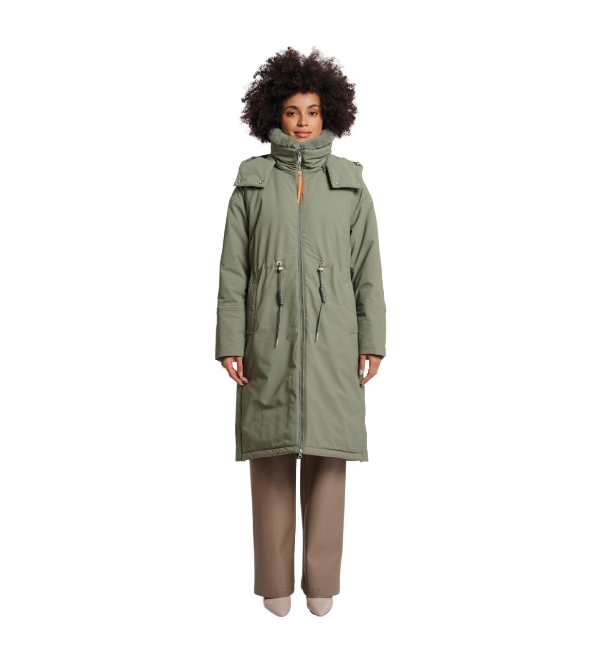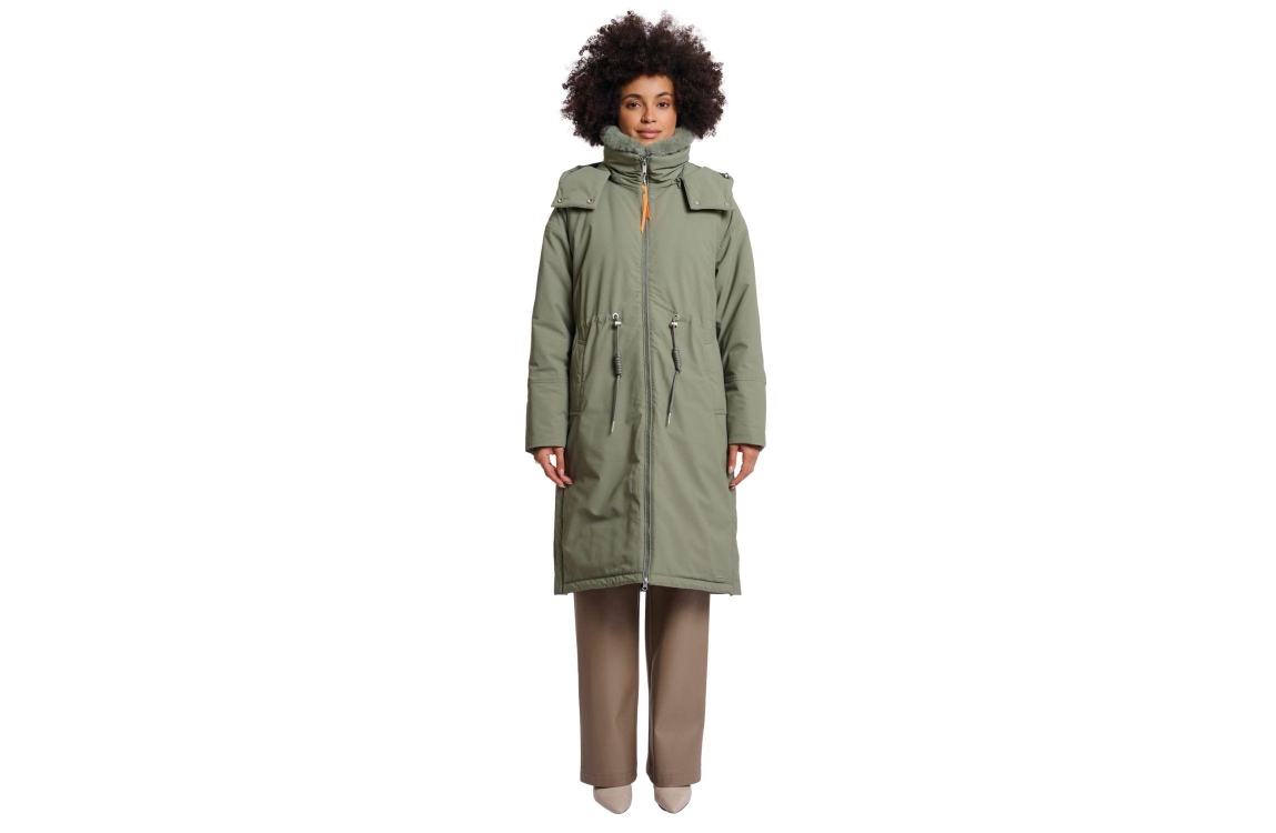 Rino en Pelle jas Quinte 7002512. Dit regular fit model heeft een opstaande kraag met afneembare capuchon en lange mouwen. Deze groene jas van Rino en Pelle sluit aan de voorzijde door middel van een rits en is voorzien van twee sluitbare zakken. Het model beschikt over een verstelbare trekkoord in de taille.