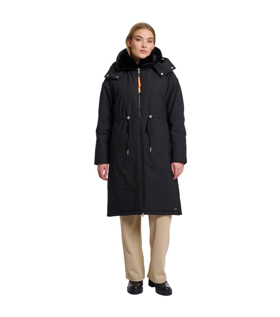 Rino en Pelle jas Quinte 7002512. Dit regular fit model heeft een opstaande kraag met afneembare capuchon en lange mouwen. Deze zwarte jas van Rino en Pelle sluit aan de voorzijde door middel van een rits en is voorzien van twee sluitbare zakken. Het model beschikt over een verstelbare trekkoord in de taille.