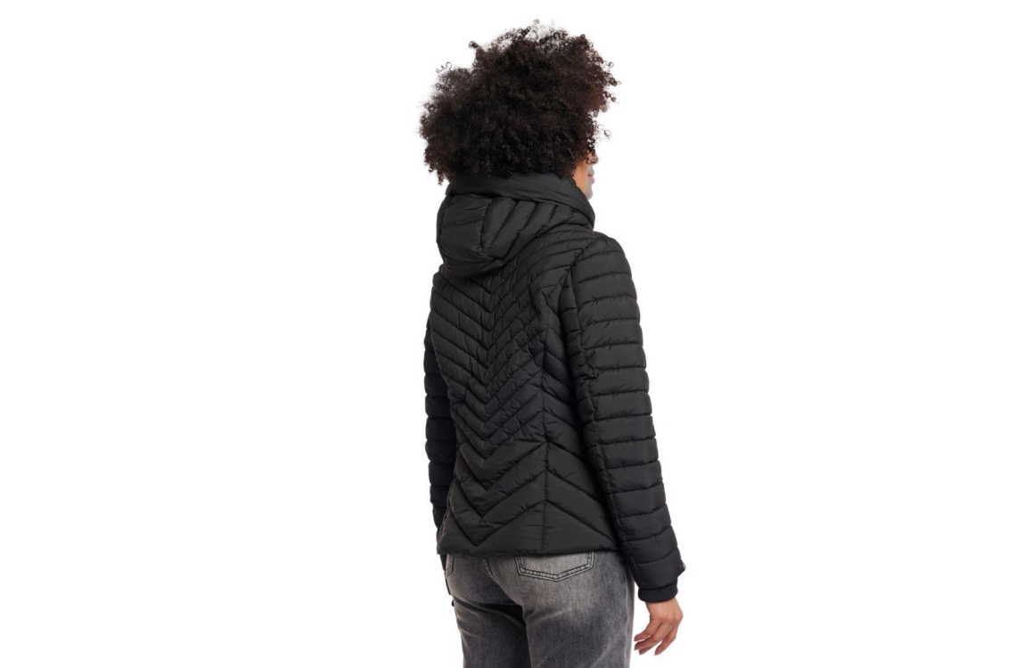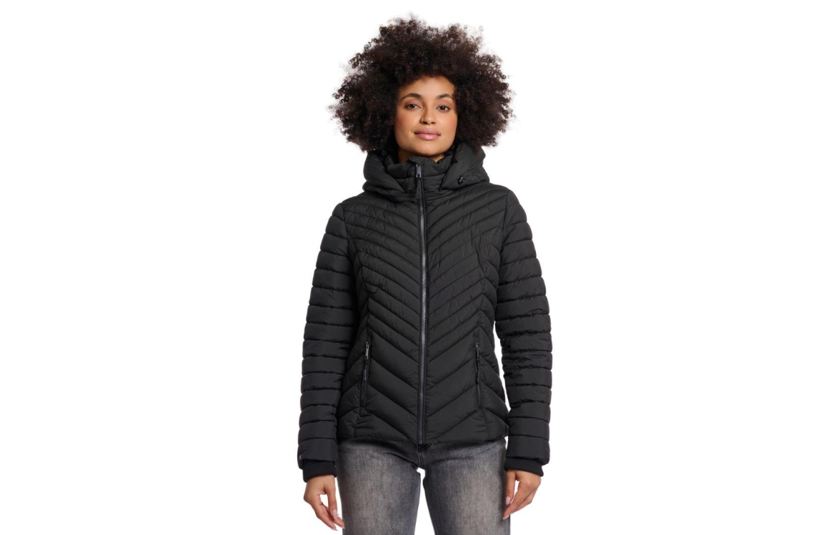 Rino en Pelle jas Erin 7002512. Dit rechtvallende model heeft een opstaande kraag met afneembare capuchon en lange mouwen met elastische boorden. Deze zwarte jas van Rino & Pelle sluit aan de voorzijde met een ritssluiting en is voorzien van twee ritszakken.
