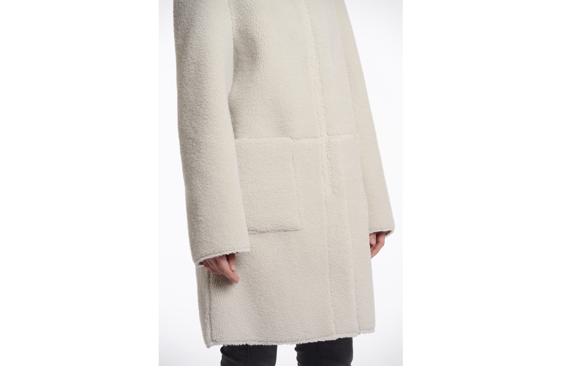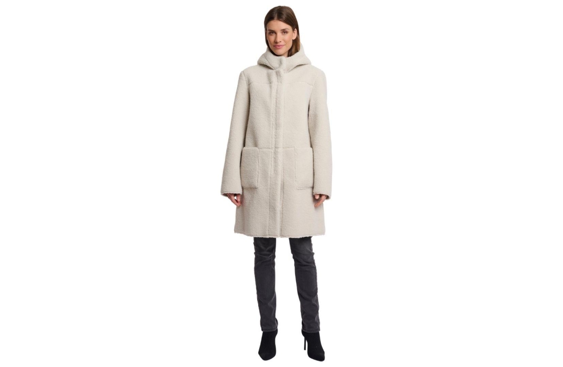 Rino & Pelle jas Alina.7002511. Dit rechtvallend model is uitgevoerd met een capuchon en lange mouwen. De Birch-jas van Rino & Pelle sluit aan de voorzijde met een rits en heeft twee grote opgestikte zakken met een sluiting. Het model is gemaakt van faux-suède en is omkeerbaar te dragen, met aan de andere zijde een zachte faux-shearling stof.