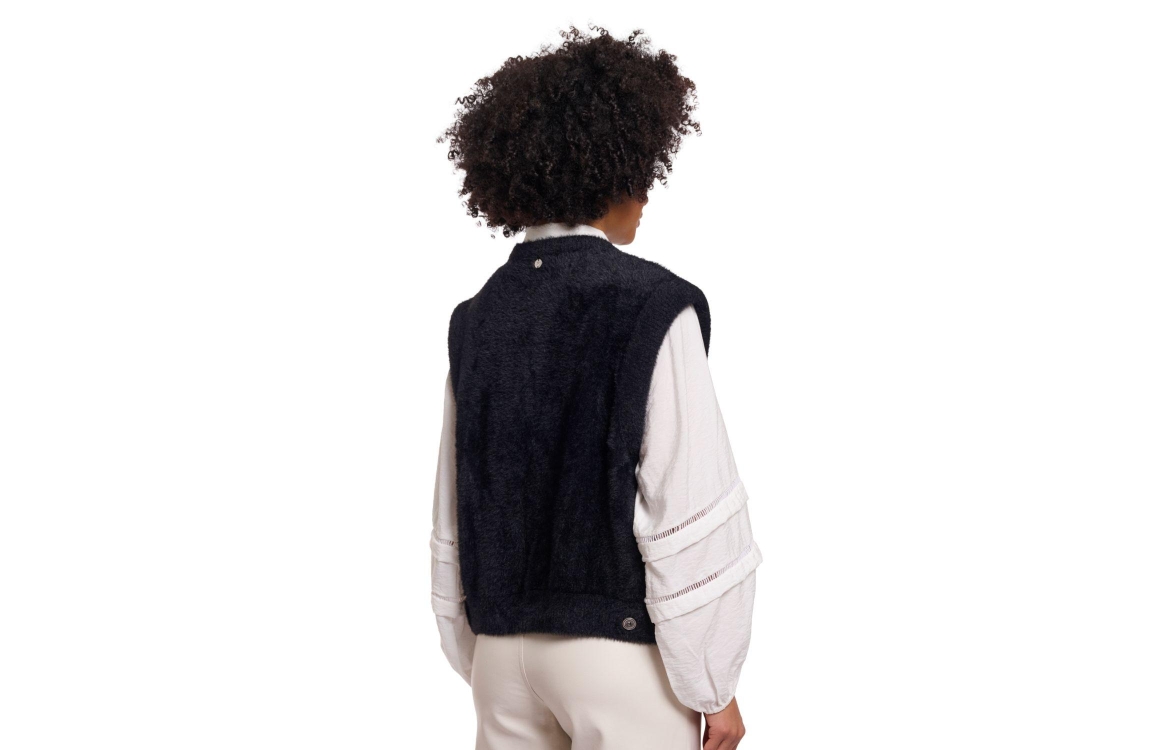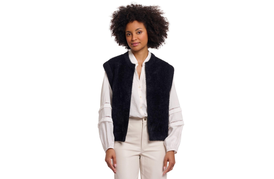 Rino en Pelle gilet Elona 5002621 9900. Dit rechtvallende model heeft een ronde halslijn en is mouwloos. Deze zwarte gilet van Rino en Pelle is uitgevoerd in faux fur kwaliteit en is afgewerkt met ribgebreide boorden.