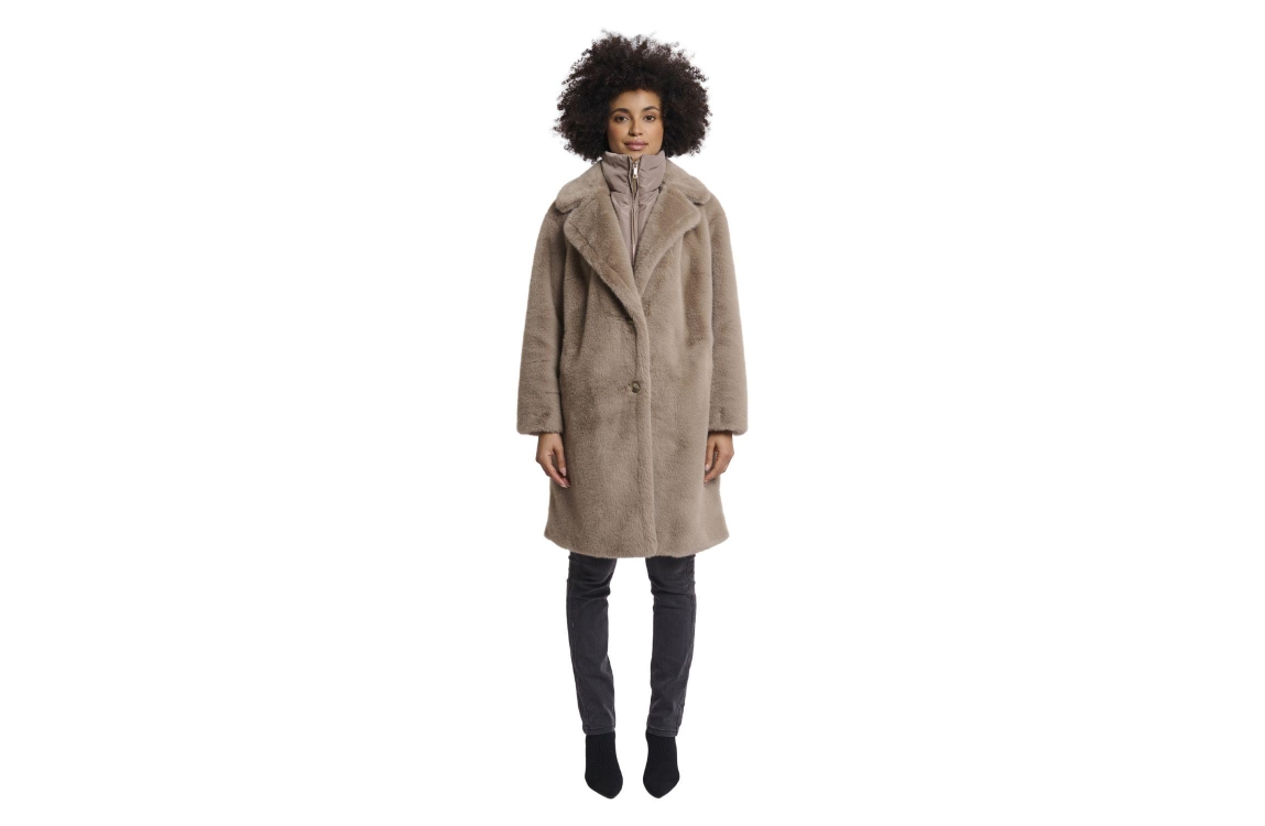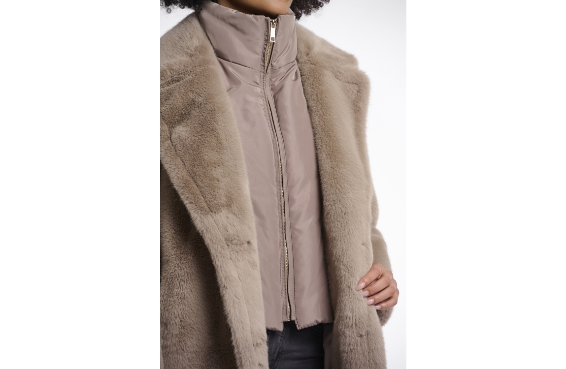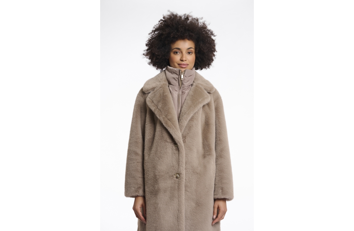 • Rino en Pelle Single breasted faux fur coat with detachable coll 10868 toffee