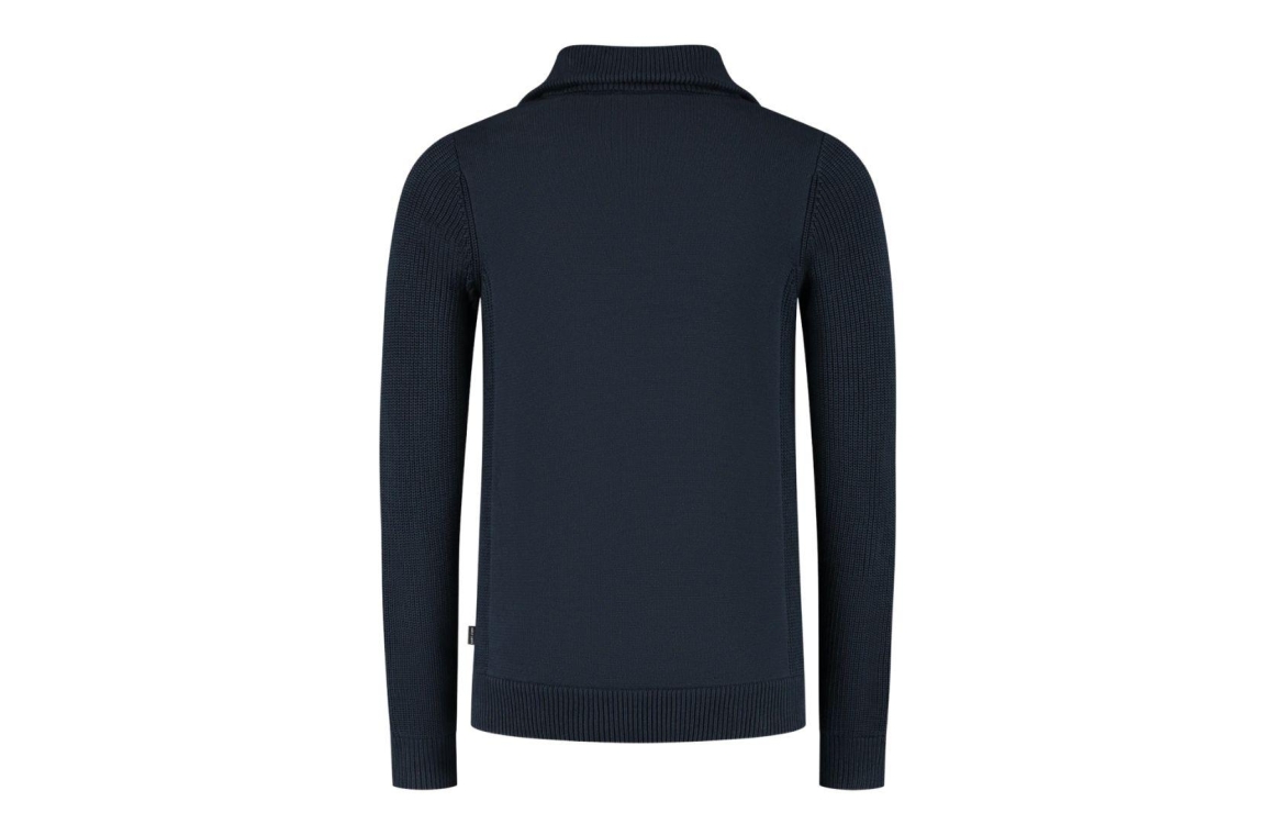 Saint Steve BENJAMIN-S 70003 dark navy. Dit rechtvallende model is voorzien van een opstaande kraag en heeft lange mouwen. Deze donker blauwe trui van Saint Steve sluit aan de bovenzijde door middel van een rits.