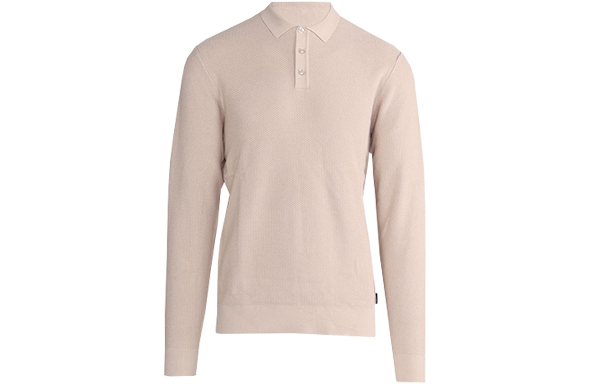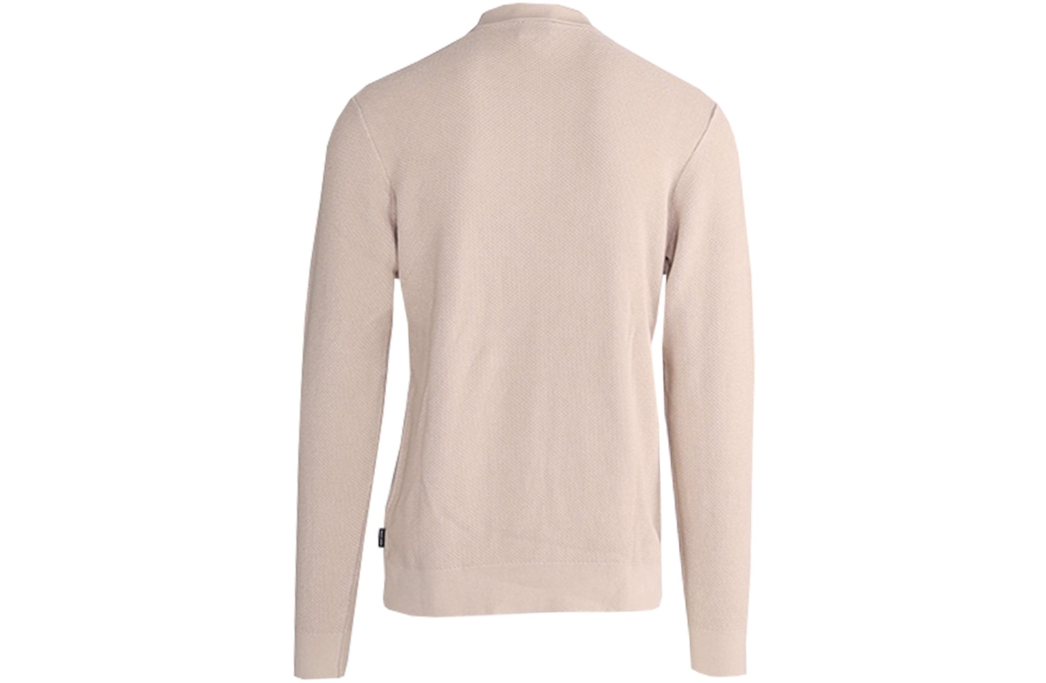 Saint Steve trui 241297. Dit rechtvallend model is voorzien van een kraag en heeft lange mouwen. Deze beige pullover van Saint Steve sluit aan de bovenzijde door middel van knopen en is allover uitgevoerd met een structuur.
