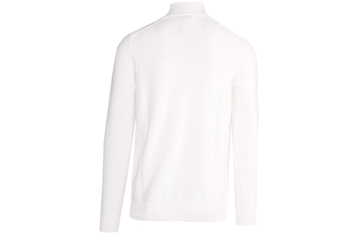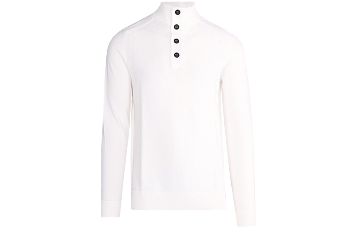 Saint Steve pullover Helmut 241298. Dit rechtvallend model is voorzien van een turtle neck en heeft lange mouwen. Deze witte gestructureerde pullover sluit aan de bovenzijde door middel van knopen.