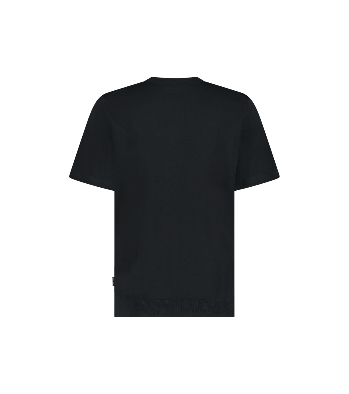 Saint Steve T-shirt Victor 231242. Dit rechtvallend model is voorzien van een ronde hals en heeft korte mouwen. Deze navy kleurige T-shirt van Saint Steve heeft aangesloten boorden.