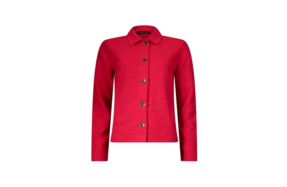 Roberto Sarto jasje 611140. Dit rechtvallende model is voorzien van een kraag en heeft lange mouwen. Dit rode jasje van Roberto Sarto sluit aan de voorzijde door middel van knopen en voorzien van twee schuine steekzakken.