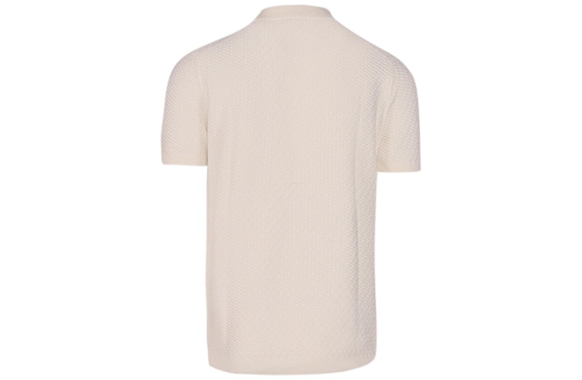 Scotland Blue polo kalvin pullover structure. Dit regular fit model heeft korte mouwen en een omgeslagen kraag. Deze offwhite polo van Scotland Blue heeft een gebreide ribbel structuur en sluit door knopen.