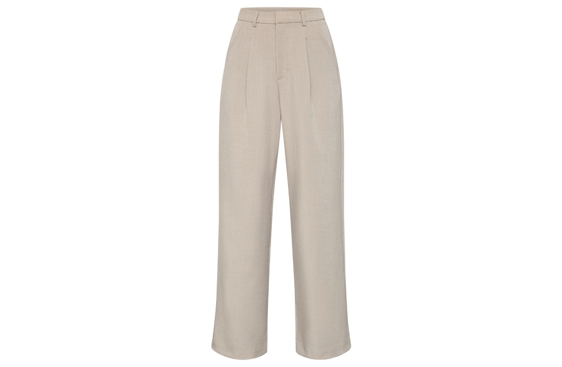Sisters Point Pants 205 Sand. Dit wide leg model sluit door middel van een haak- en oogsluiting en een rits. Deze beige broek van Sisters Point is voorzien van plooien aan de voorzijde en zijzakken.