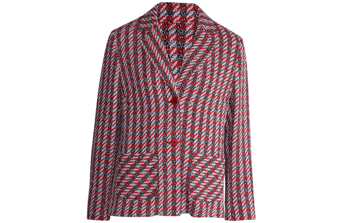 Sommermann blazer Amsterdam 7570-11. Dit rechtvallend model heeft een reverskraag en lange mouwen. Deze rode blazer van Sommermann sluit aan de voorzijde door middel van knopen en heeft een all-over ruitpatroon in verschillende kleuren. Dit model beschikt over twee opgestikte zakken aan de voorzijde.