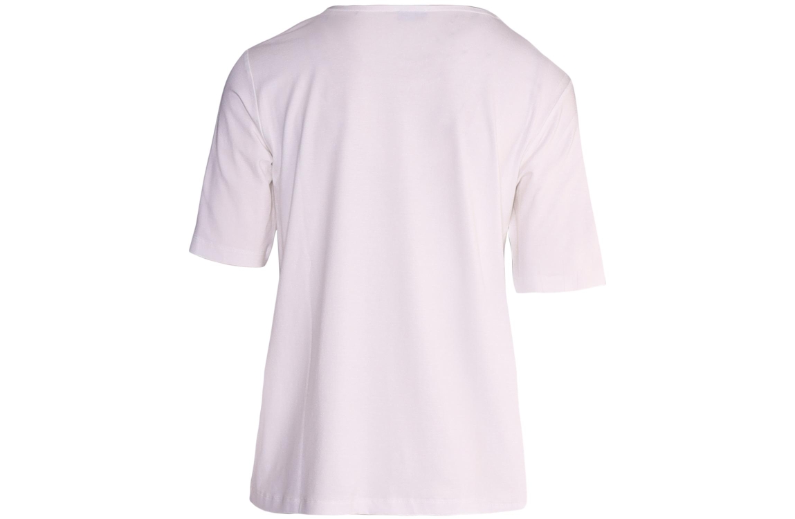 Sommermann T-shirt Silke 5564-31. Dit rechtvallend model heeft korte mouwen en een diepe ronde hals. Deze witte T-shirt van Sommermann is aan de voorzijde bewerkt met een opdruk in verschillende kleuren. Dit model bevat veel stretch en is afgewerkt met boorden.