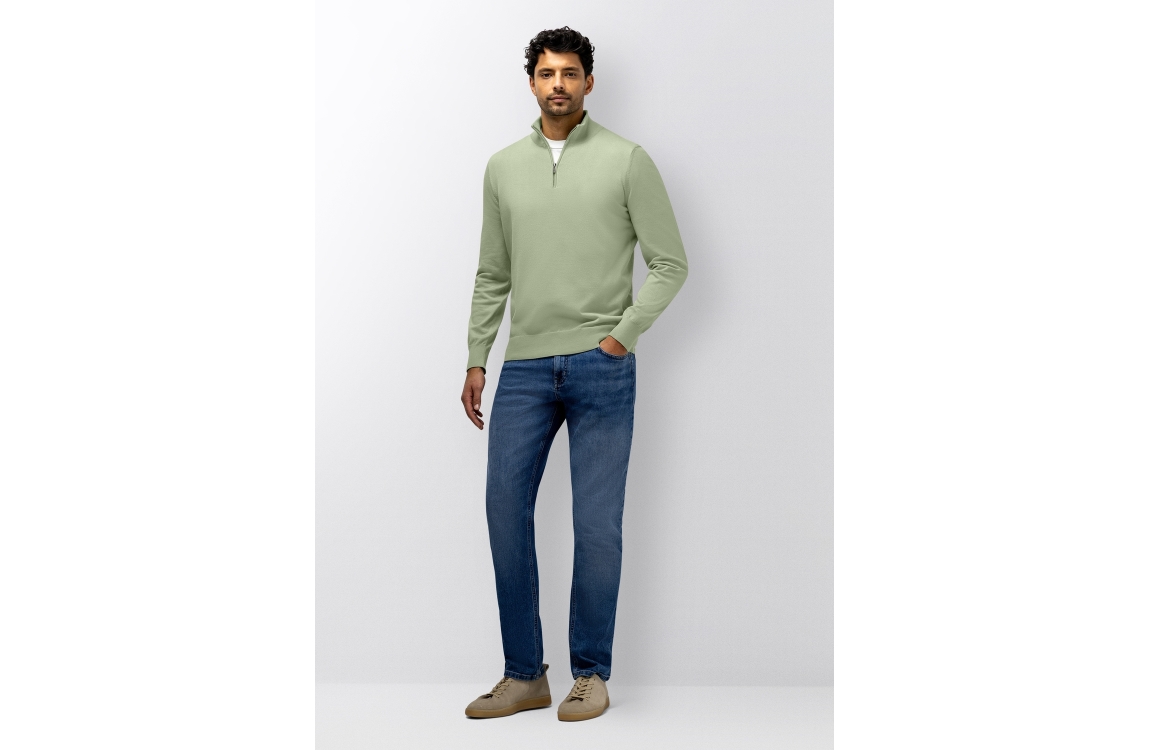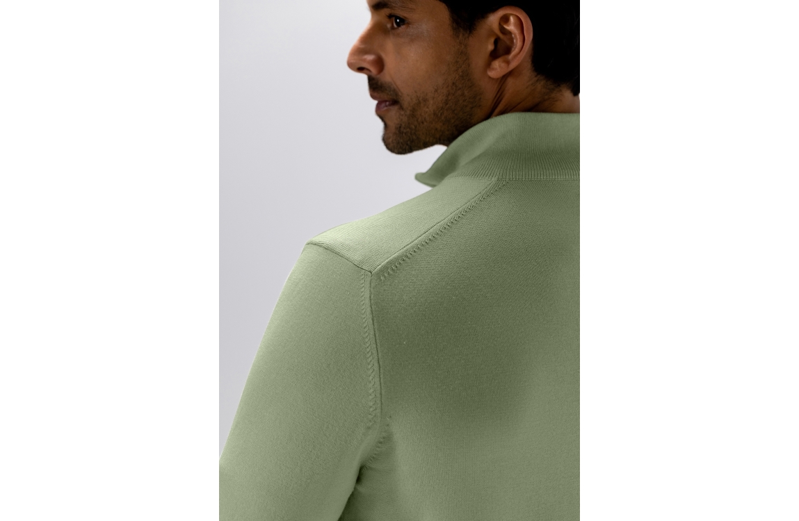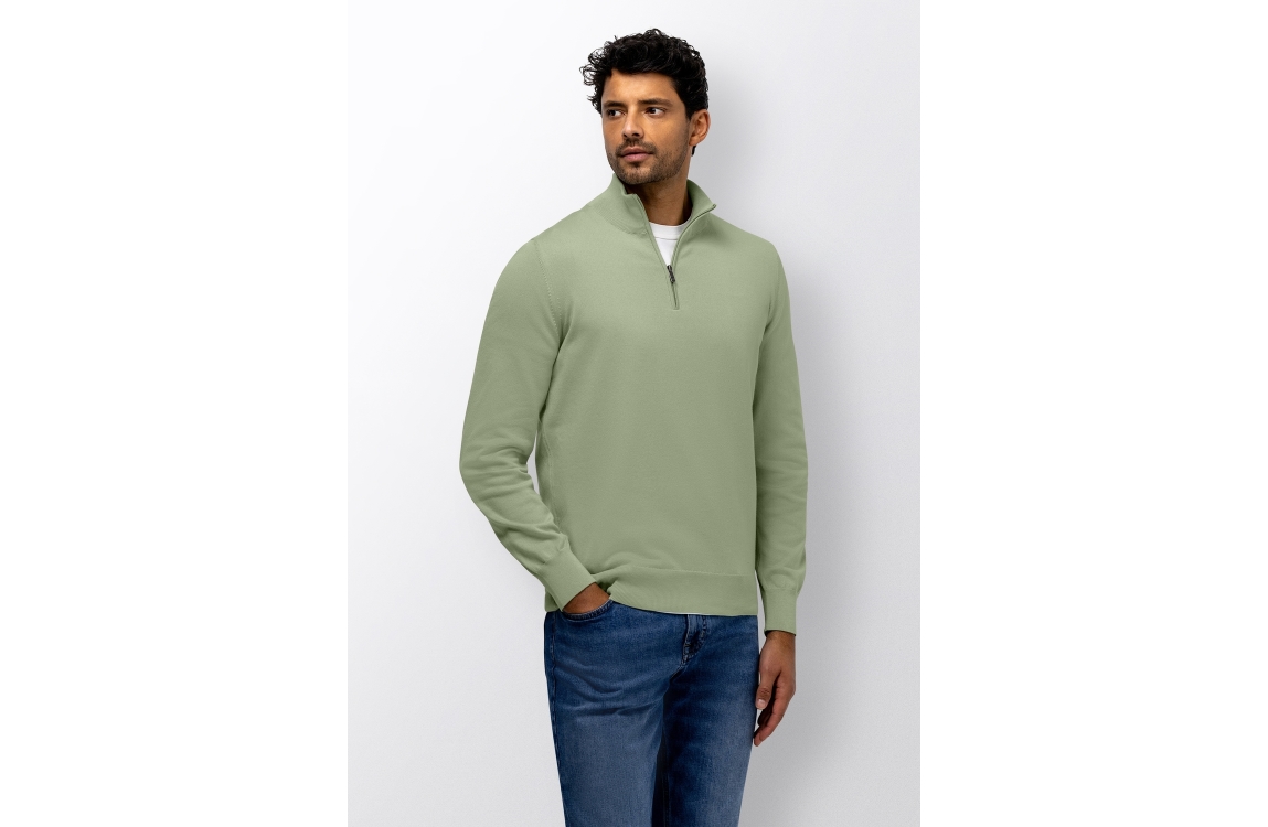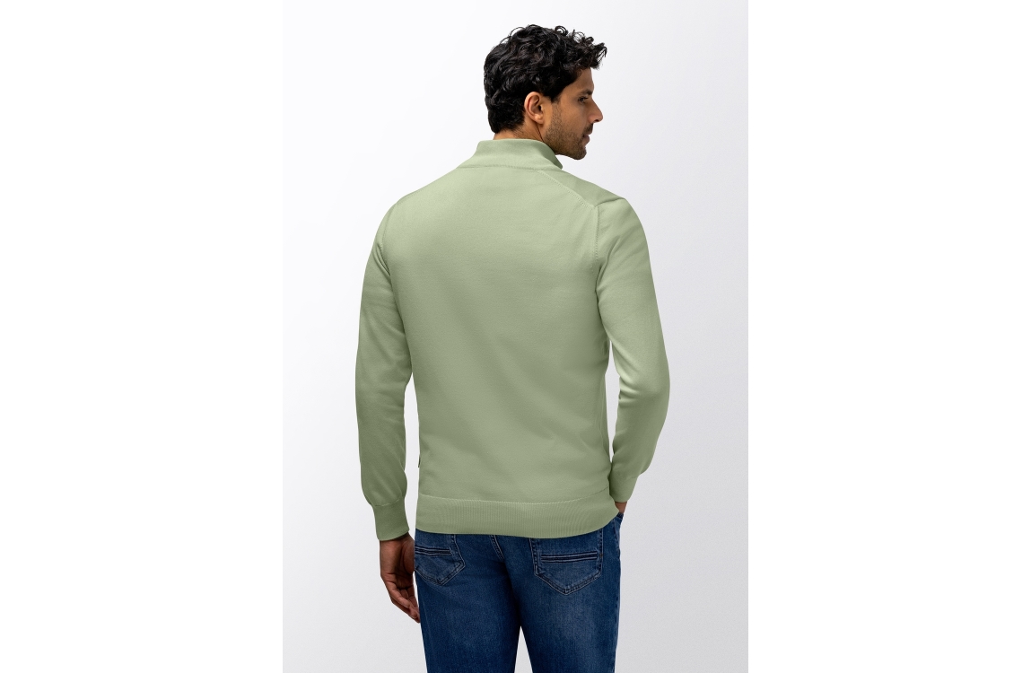 State of Art pullover 13116121. Dit rechtvallend model heeft een opstaande kraag met rits en lang en mouwen. Deze groene pullover van State of Art is voorzien van elastische boorden aan de onderzijde.