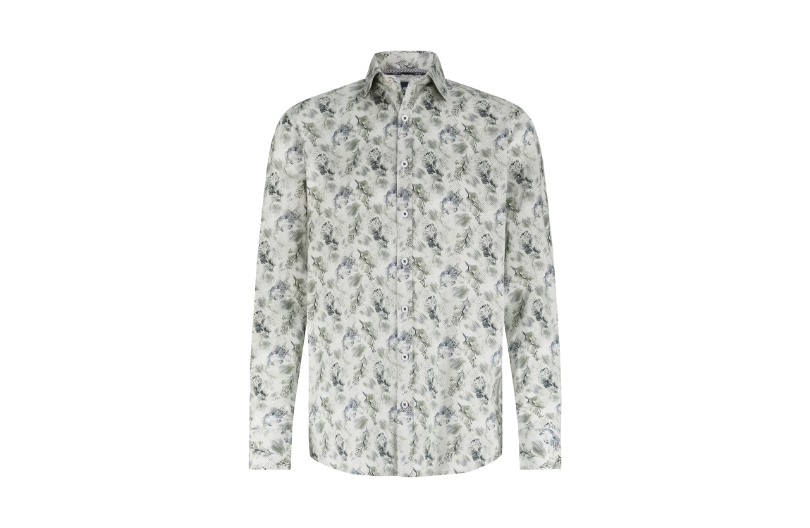 State of Art Shirt LS Print Popli 3857 Olijfgroen. Dit rechtvallende model is voorzien van een button-down kraag en sluit door middel van knopen. Dit olijfgroene overhemd van State of Art heeft lange mouwen afgewerkt met knopen en is bewerkt met een all-over print.