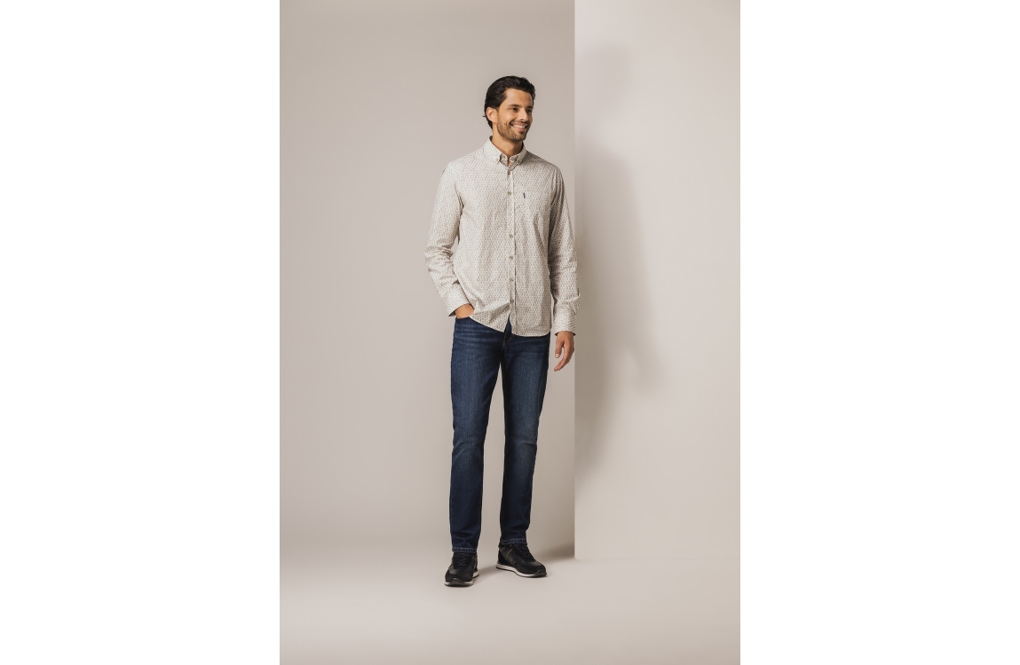 State of Art Shirt LS Print 21425256. Dit rechtvallende model is voorzien van een kraag en heeft lange mouwen. Dit cognac kleurige overhemd van State of Art heeft een all over print is afgewerkt met een borstzak. Dit model sluit aan de voorzijde door middel van knopen.