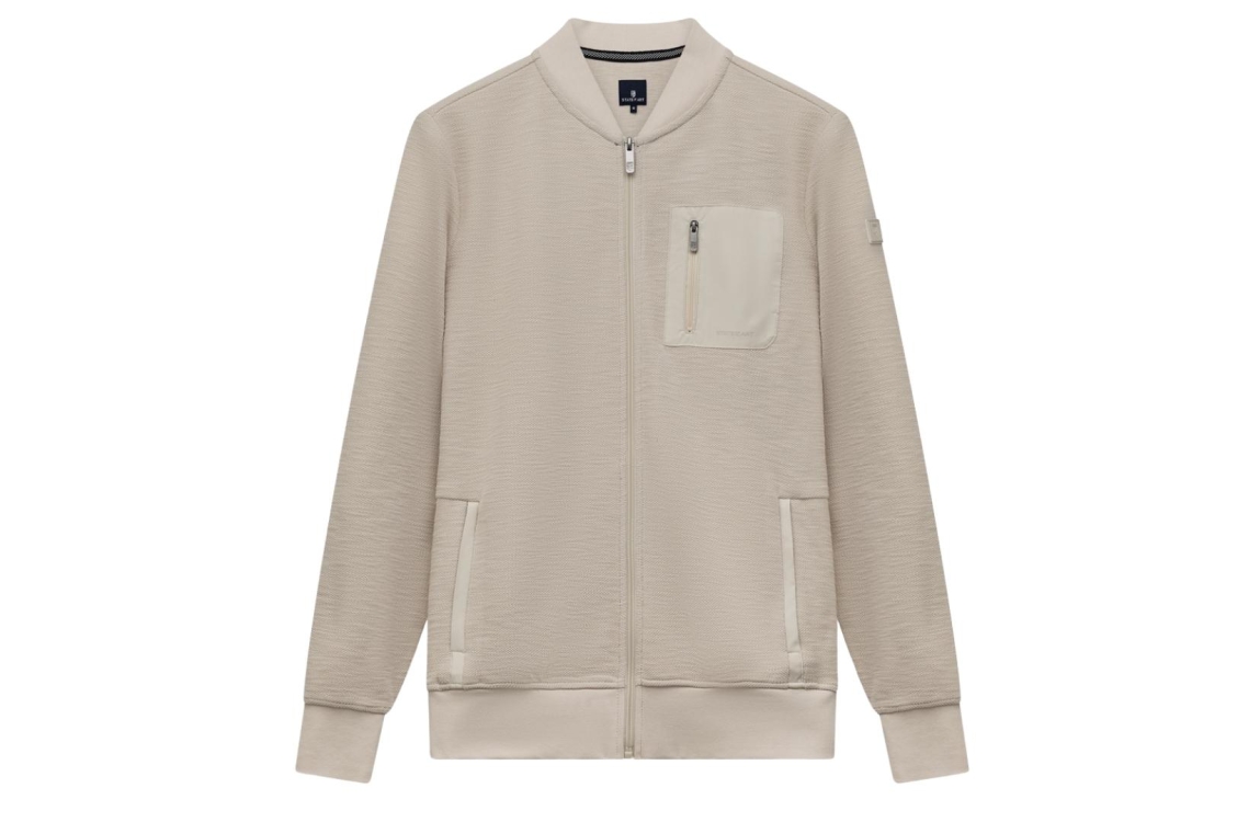State of Art vest 56116503. Dit rechtvallend model heeft een ronde hals, lange mouwen en sluit door middel van een rits. Dit beige kleurige vest van State of Art is bewerkt met verschillende ritszakken en uitgevoerd in een structuur materiaal.