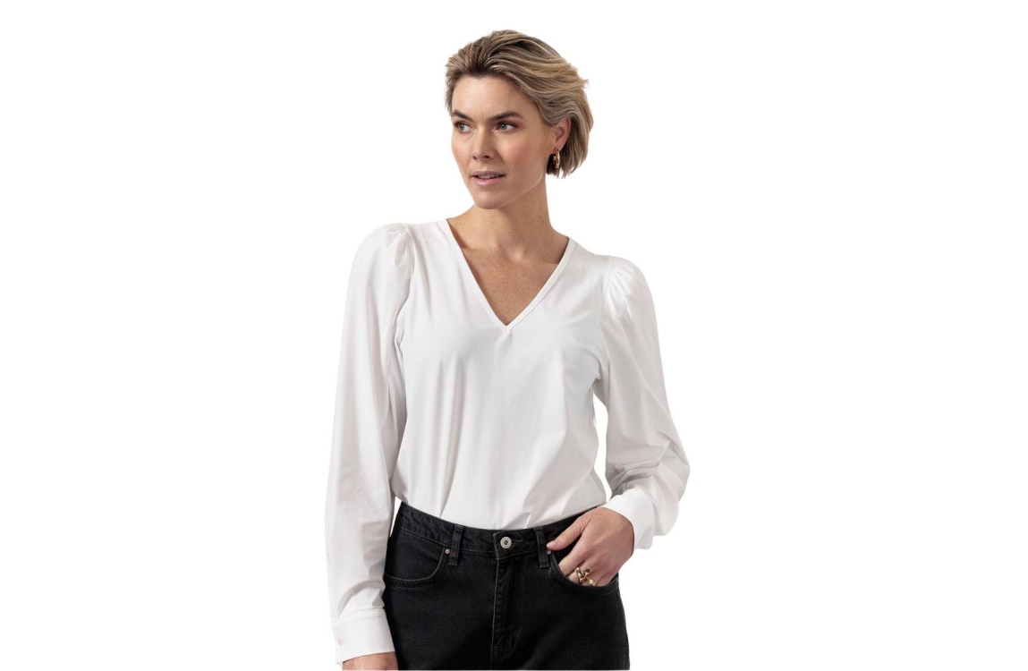Studio Anneloes les top 12519. Dit rechtvallend model is voorzien van een v-hals en heeft lange mouwen. Deze witte top van Studio Anneloes is uitgevoerd in een travel kwaliteit.