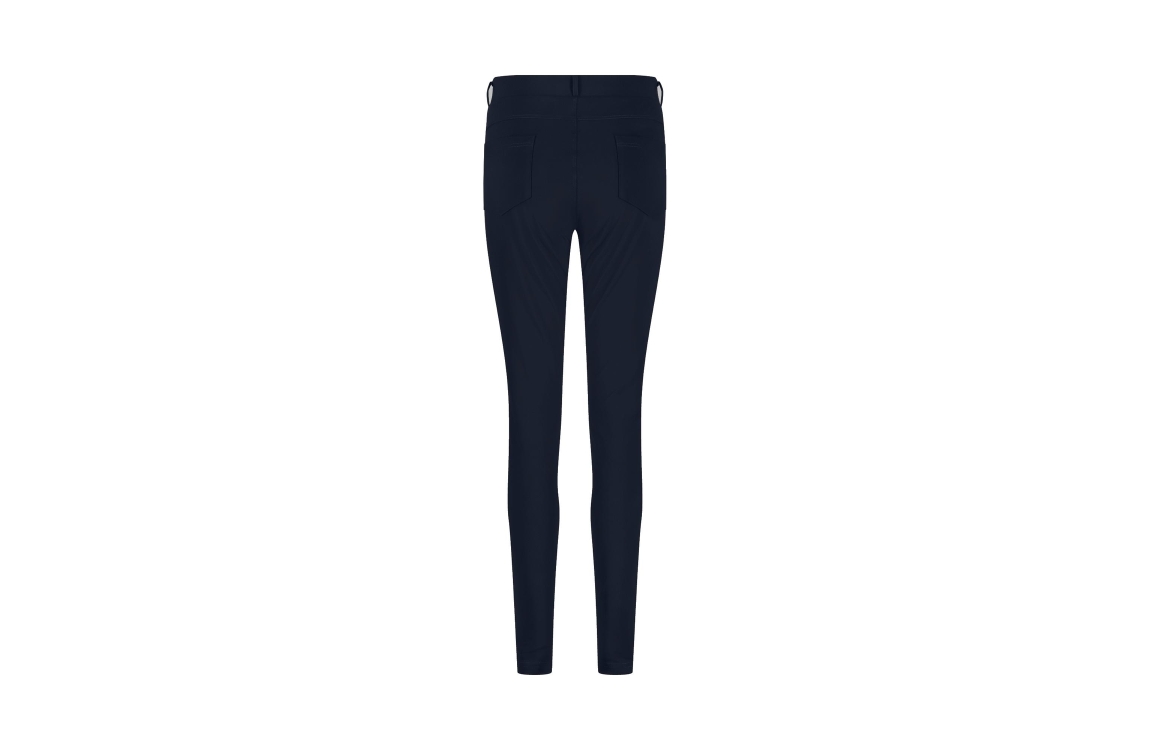 Studio Anneloes Margot trousers 94804. Dit slim fit model is voorzien van een tailleband met elastiek en riemlusjes. Deze donkerblauwe broek van Studio Anneloes heeft twee steekzakken en decoratieve paspelzakken aan de achterzijde. Dit model is uitgevoerd in een zwaardere travel stof.