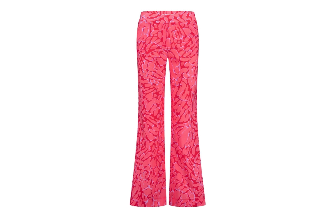 Studio Anneloes broek Meghan. Dit straight fit model sluit door middel van een elastische tailleband en is voorzien van twee steekzakken aan de voorzijde. Deze roze/rode broek van Studio Anneloes is all-over bewerkt met een print.