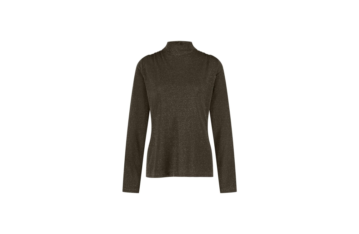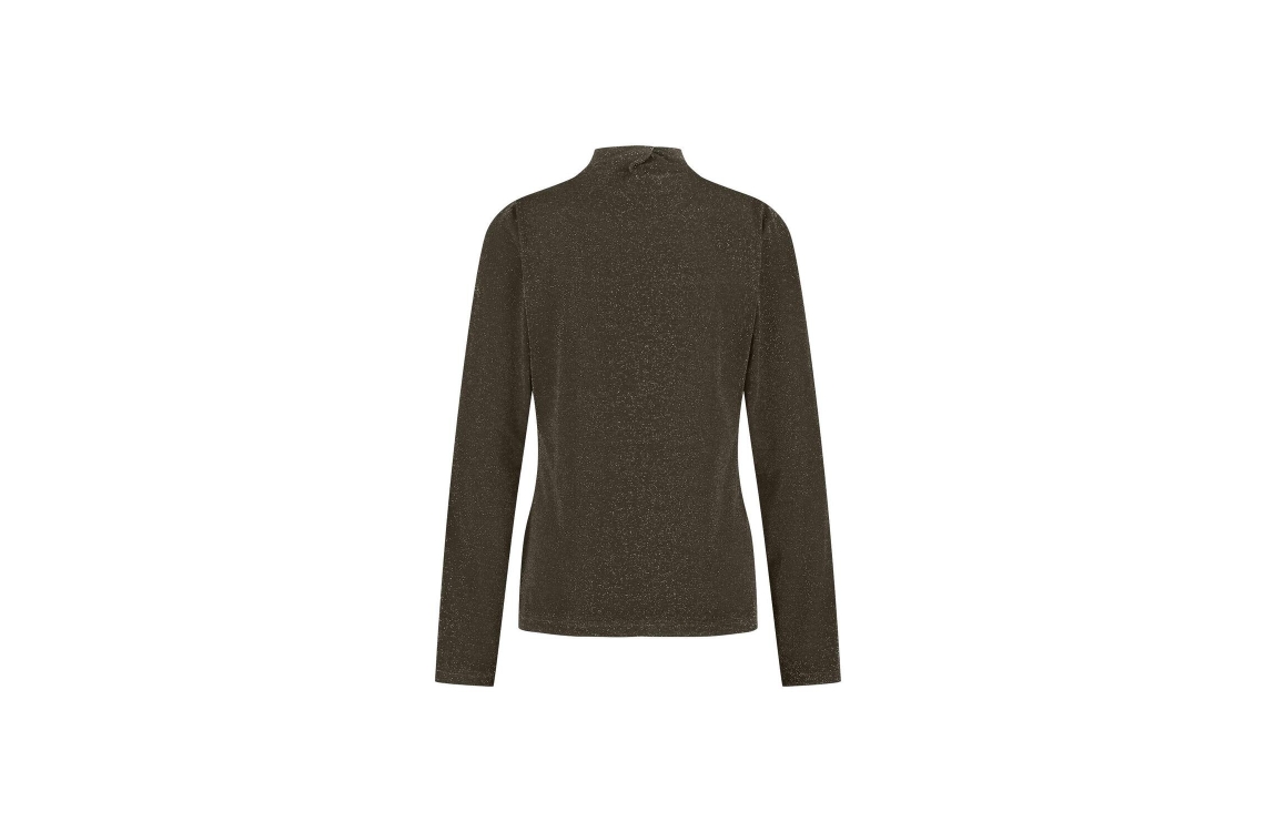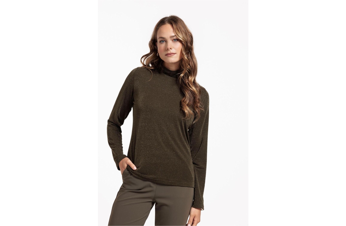 Studie Anneloes miki glitter top. Dit rechtvallend glitter top heeft een col hals en lange mouwen. Deze groene top van Studio Anneloes is bewerkt met glitter over de top heen.