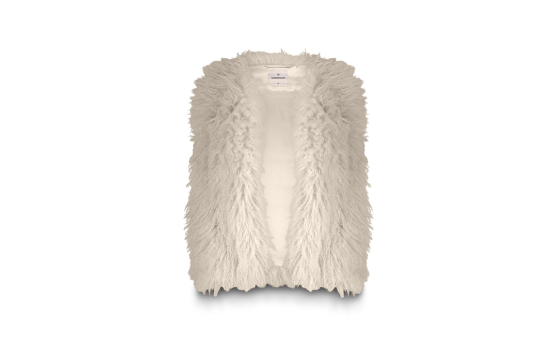 Summum Woman gilet 9s140-12299. Dit regular fit model heeft een ronde halslijn en is mouwloos. Deze off white gilet van Summum Woman is all-over bewerkt met Afghaanse faux fur en heeft een satijnen voering.