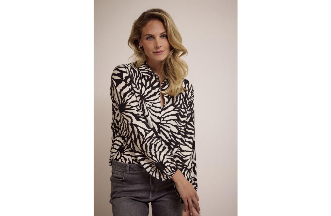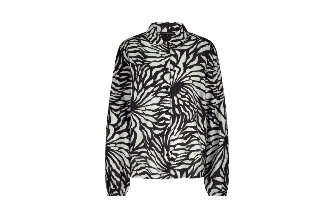Tramontana Blouse Wildflower 009998 Print blacks. Dit rechtvallende model is voorzien van een kraag en heeft lange mouwen. Deze zwart/witte blouse van Tramontana sluit door middel van knopen en is all-over bewerkt met een print.