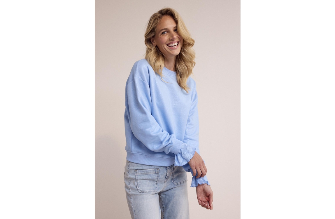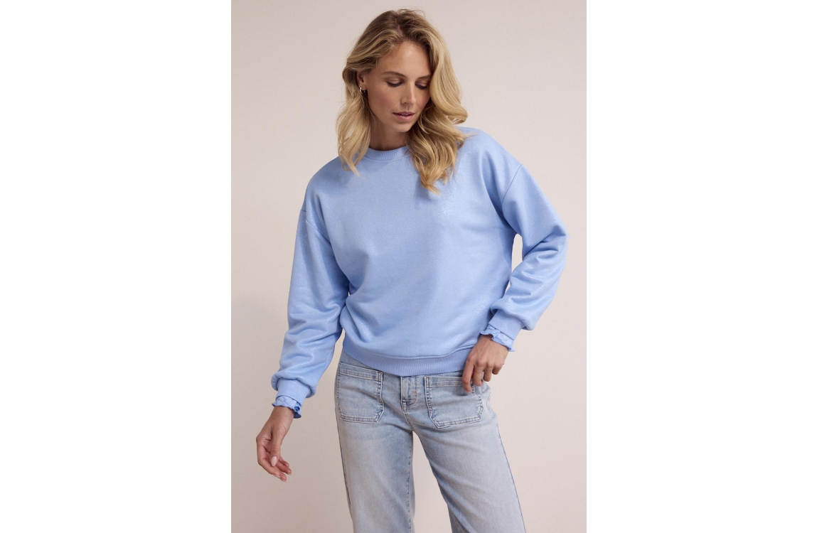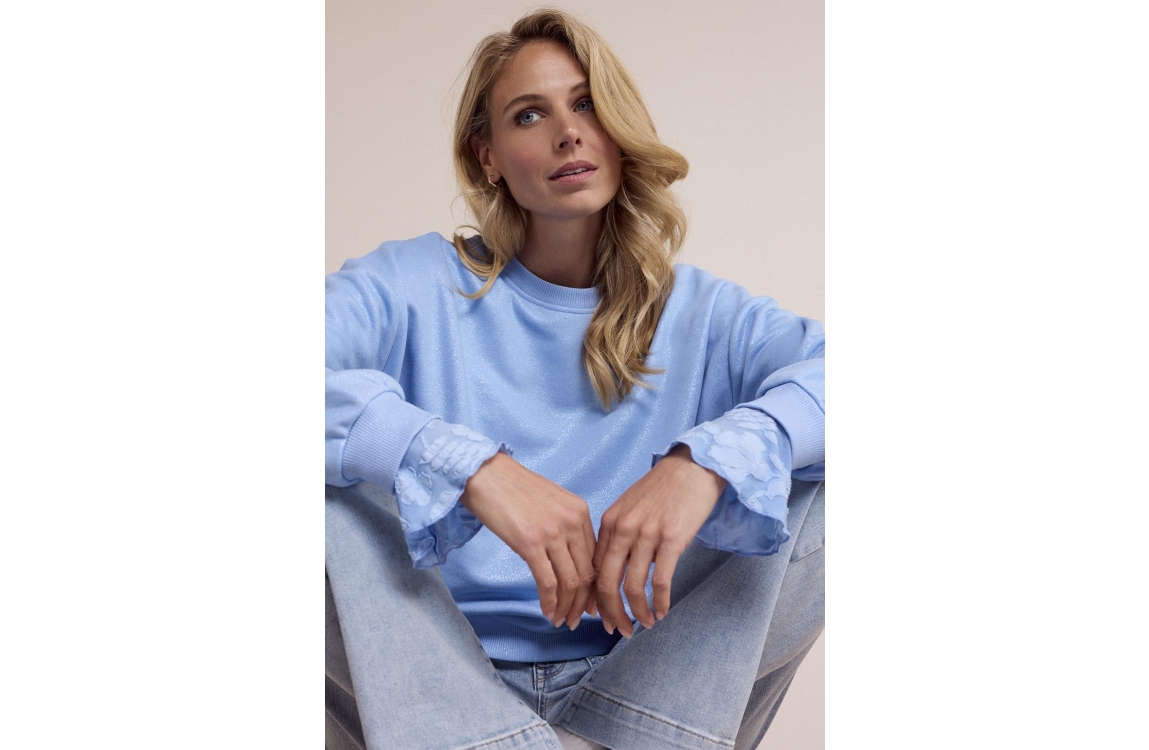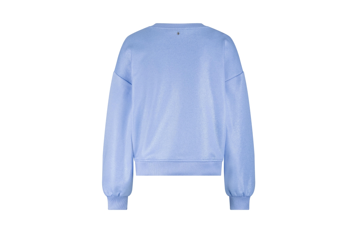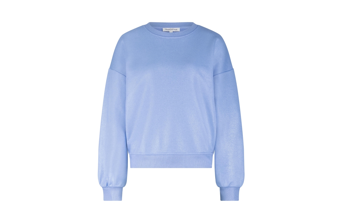 Tramontana Coated Sweater D03-19-601. Dit rechtvallend model heeft een ronde hals en lange mouwen. Deze blauwe sweater van Tramontana is bewerkt met allover glitters en heeft elastische boorden aan de onderzijde.