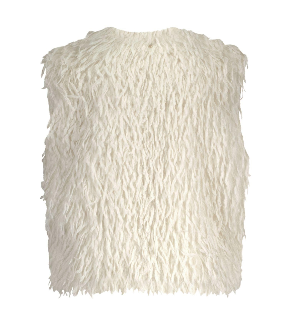Tramontana gilet C22-17-802 1100. Dit rechtvallende model heeft een ronde halslijn en is mouwloos. Deze off white gilet van Tramontana sluit door middel van een haaksluiting en is all-over bewerkt met faux fur kwaliteit.