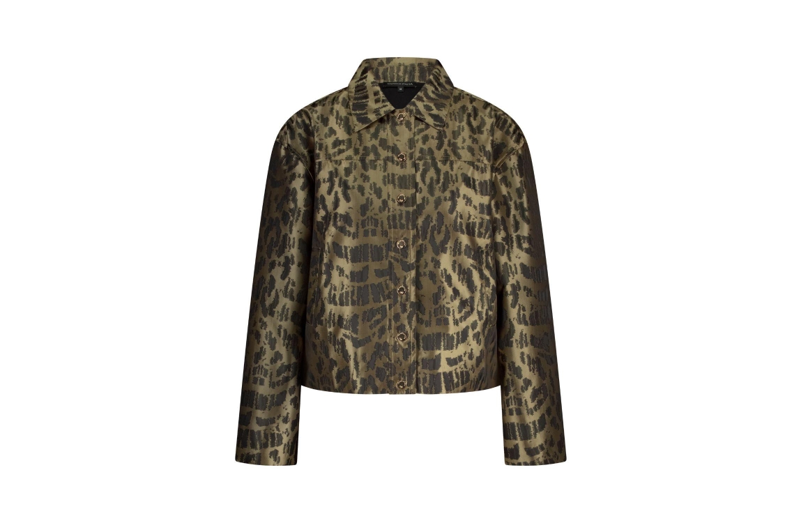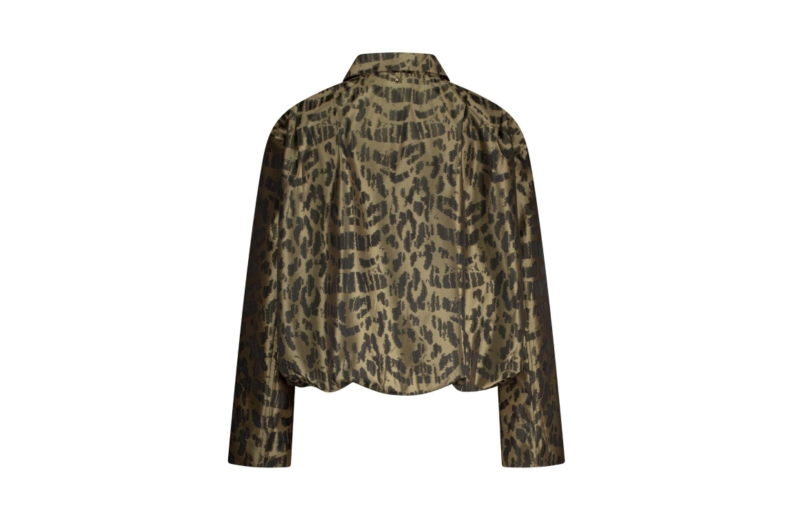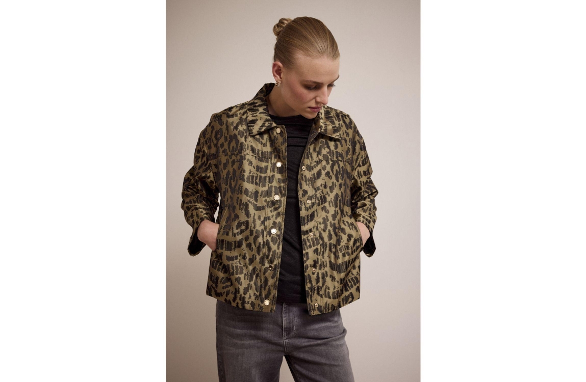 Tramontana Jacquard Jacket 002802 Camle jacquard. Dit rechtvallende model heeft een kraag en lange mouwen. Dit groene jasje van Tramontana sluit door middel van knopen en heeft twee steekzakken. Dit model is bewerkt met een jacquard print en uitgevoerd in een glazende stof.