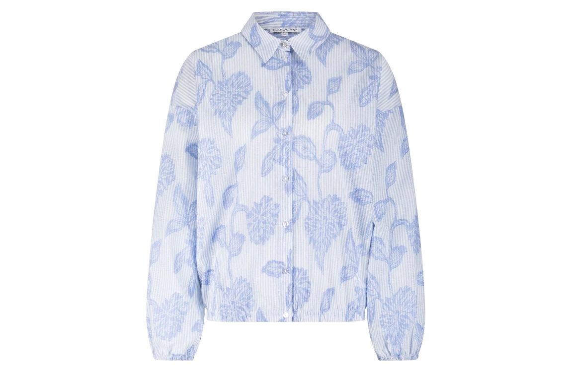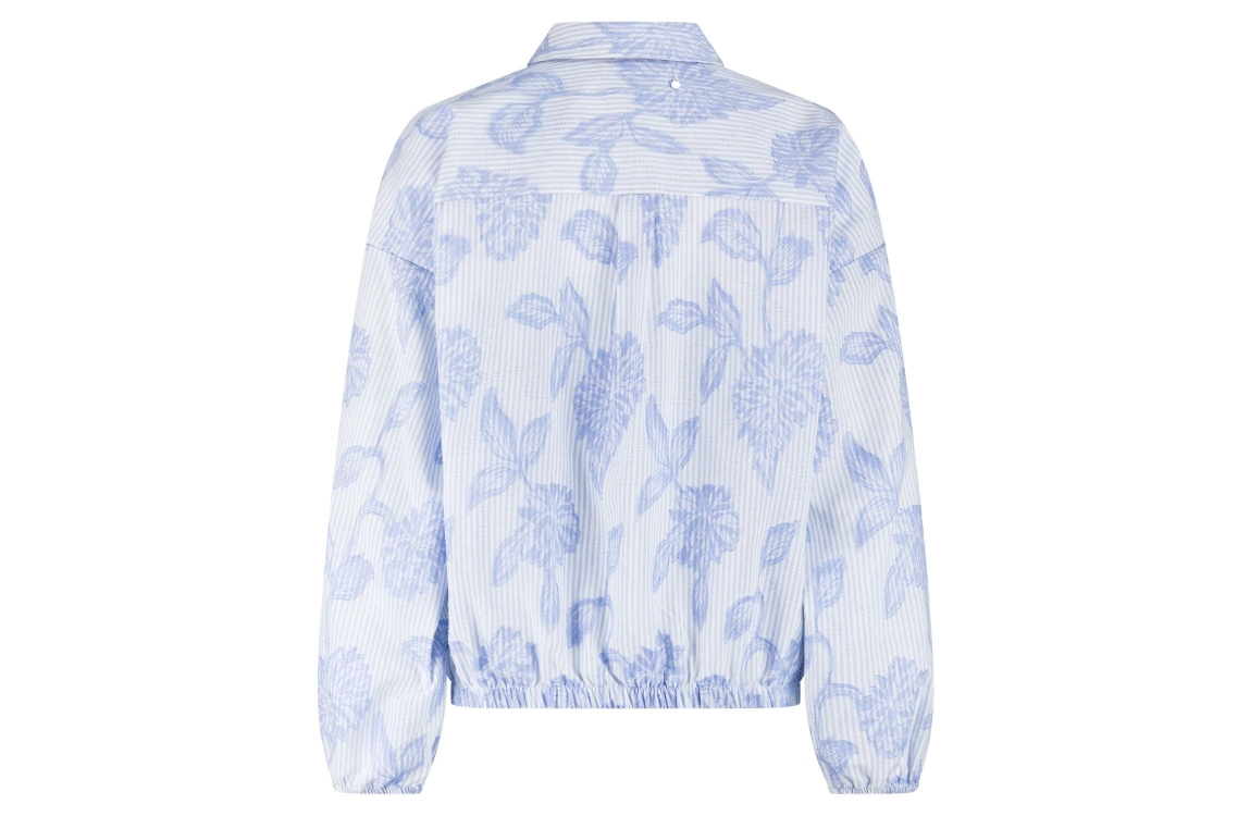 Tramontana Striped Blouse Flower Pattern 005042 Breezy blue. Dit rechtvallende model heeft een kraag en lange mouwen. Deze blauwe blouse van Tramontana sluit door middel van knopen en is een iets korter model afgewerkt met elastische boorden. Dit model is bewerkt met een subtiel streepdessin en bloemenpatroon.