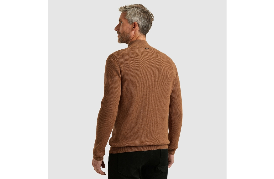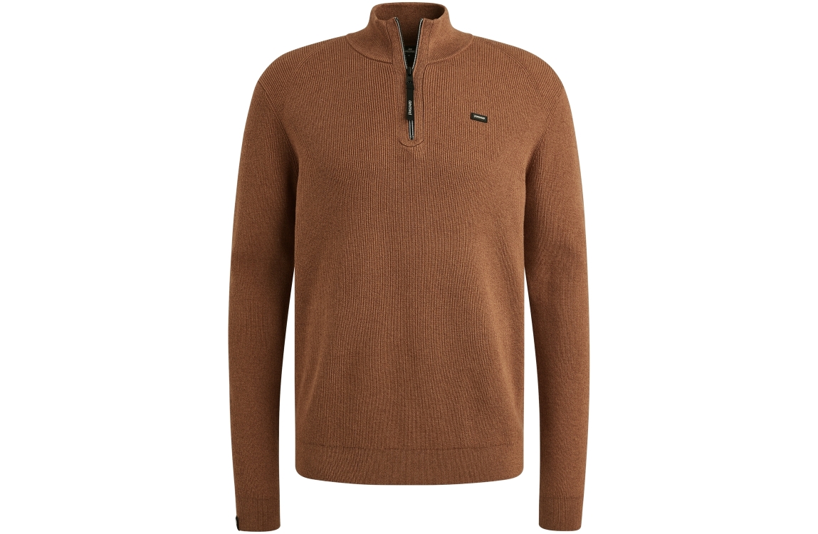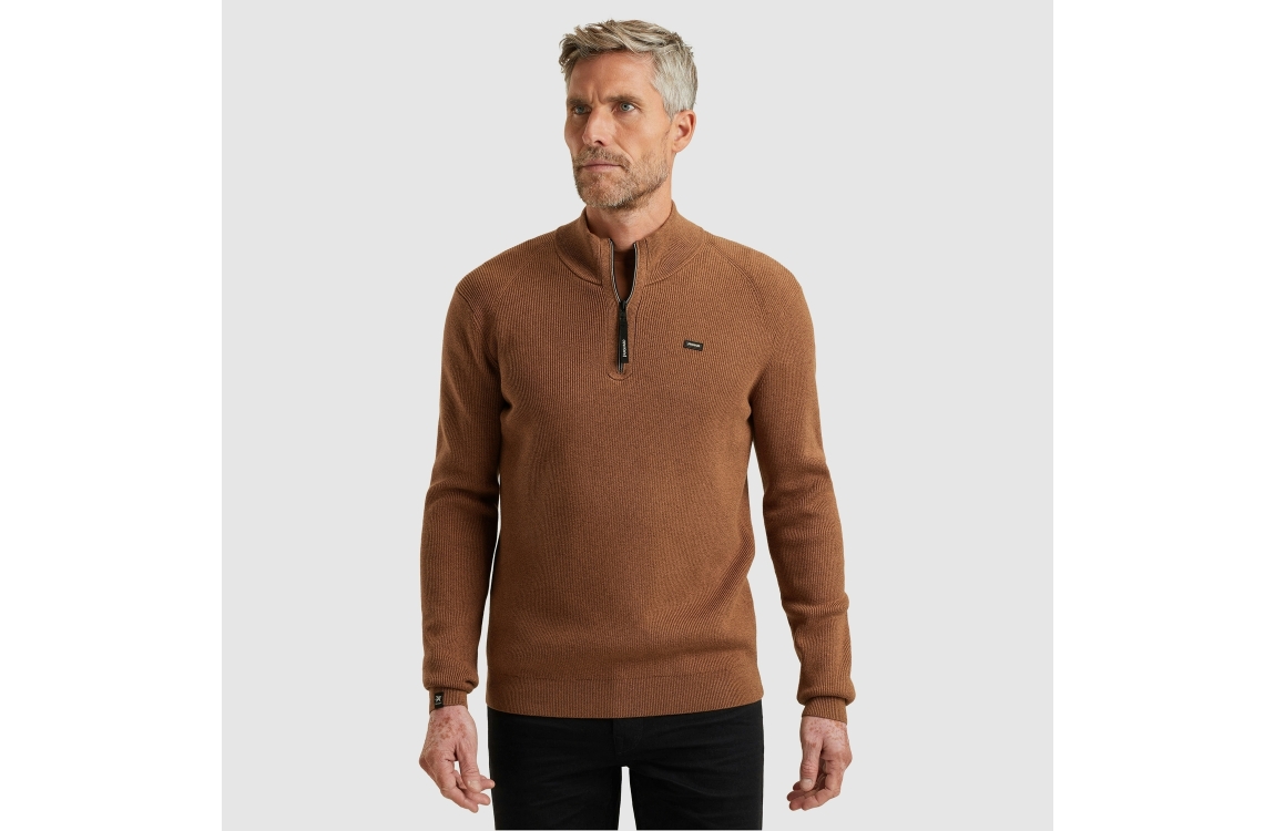 Vanguard pullover VKW2510332. Dit rechtvallend model is voorzien van een turtle neck met rits en heeft lange mouwen. Deze roestbruine pullover is afgewerkt met het logo op de borst.
