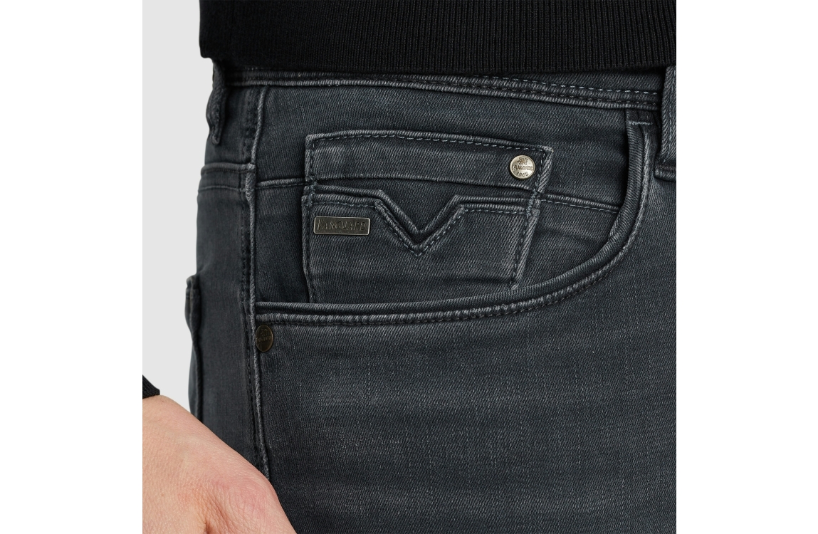 Vanguard jeans Rider. Dit slimfit model sluit door middel van een knoop en rits en heeft lange pijpen. Deze blauw-grijze jeans van Vanguard is voorzien van steekzakken aan de voor- en achterzijde en is bewerkt met een lichte wassing.