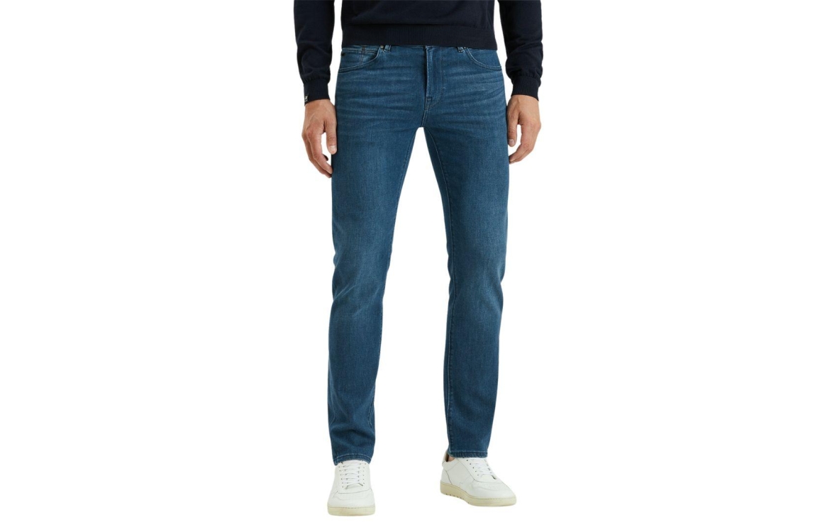 Vanguard V7 jeans Rider VTR515. Dit regular fit model sluit door middel van een knoop en rits en heeft lange pijpen. Deze blauwe jeans van Vanguard is uitgevoerd in een 5-pocketmodel.