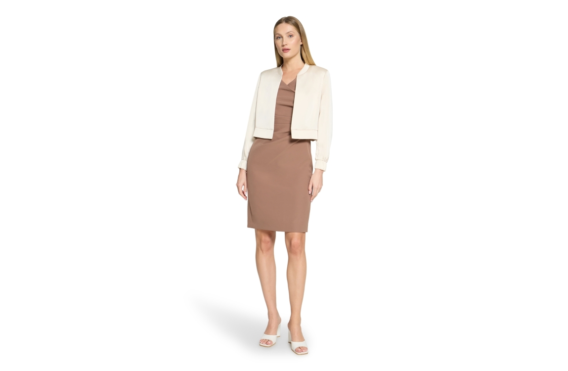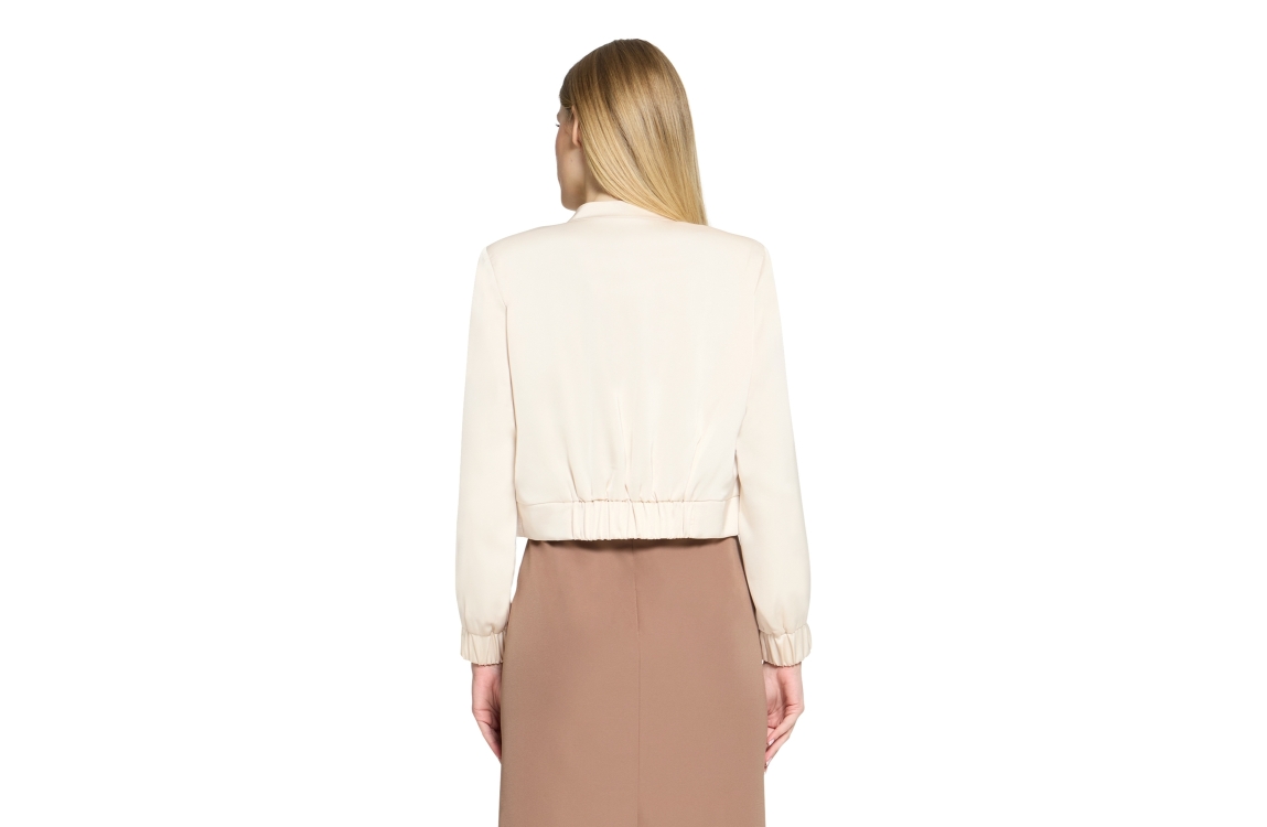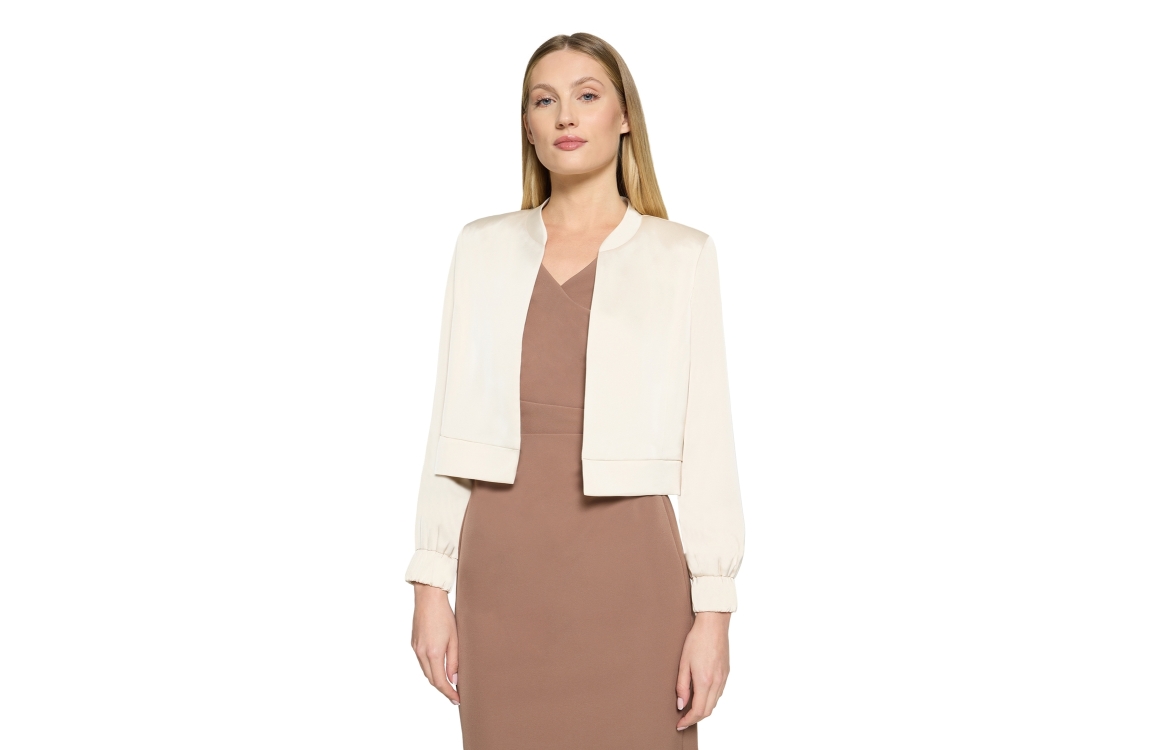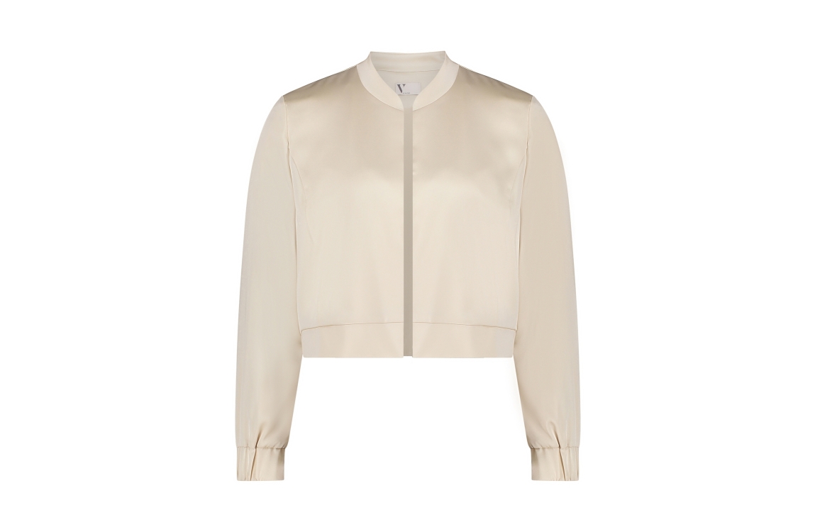 Vera Mont blazer 03054262. Dit cropped model heeft een ronde hals en lange mouwen. Dit beige/champagne kleurige jasje van Vera Mont is uitgevoerd in een bomber model, beschikt over schoudervulling en is afgewerkt met een elastische boord aan de onderzijde.
