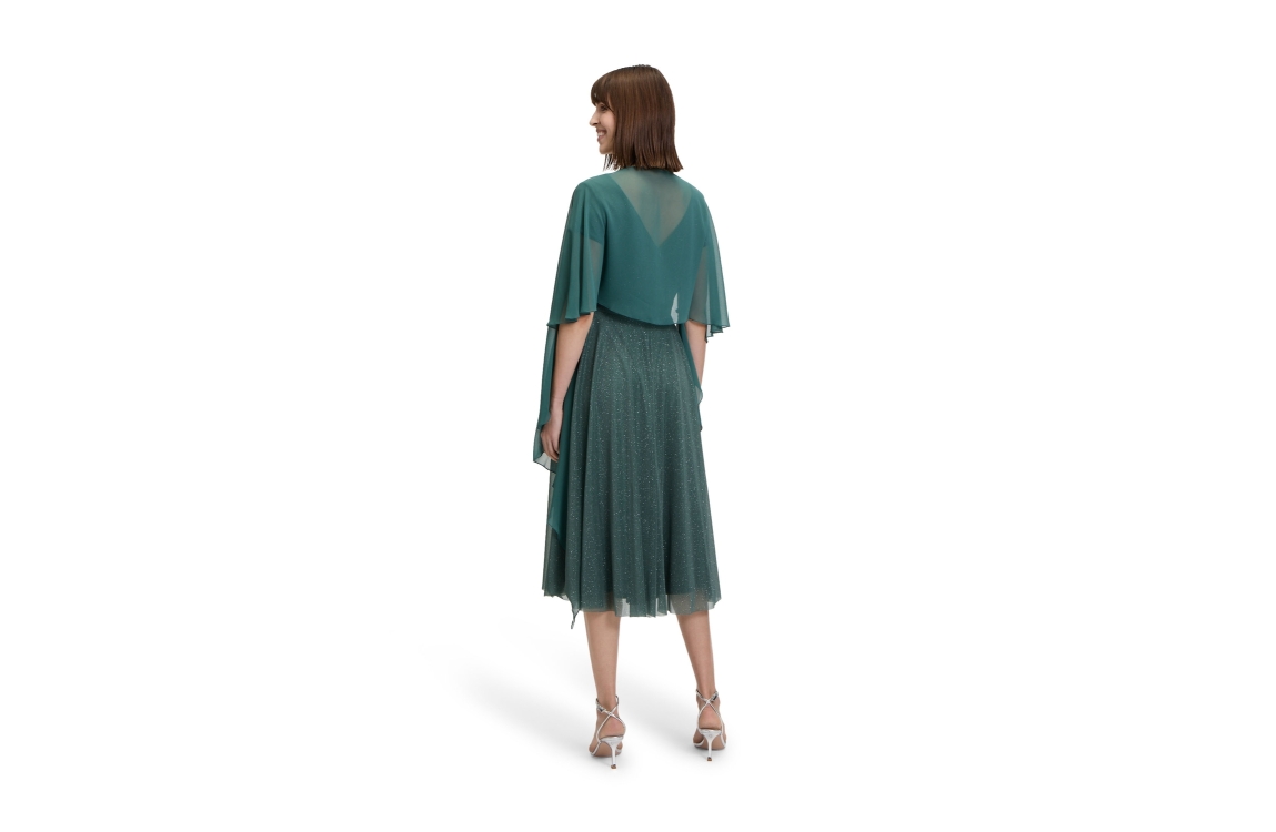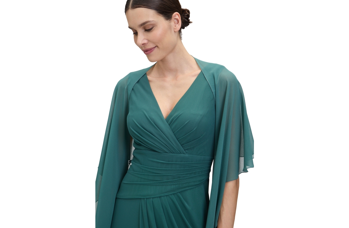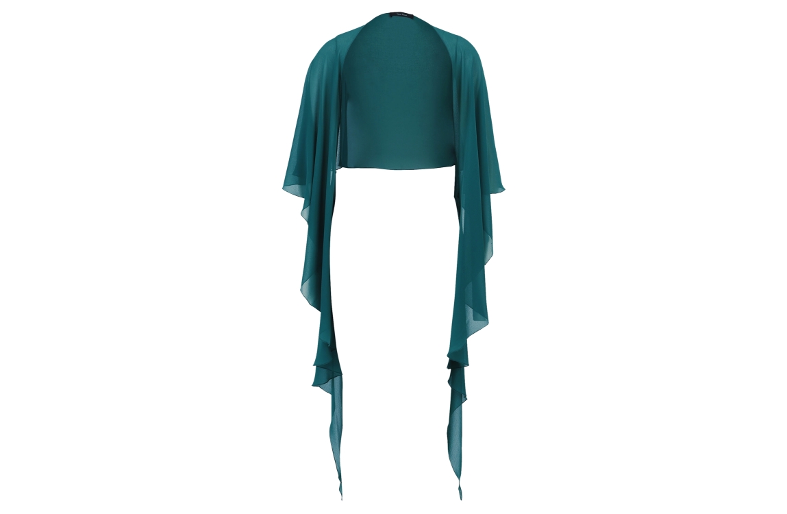 Vera Mont stola 00714825. Dit soepelvallend model is voorzien van een v-hals en heeft korte mouwen. Deze groene stola van Vera Mont sluit aan de voorzijde door middel van een knoopje.