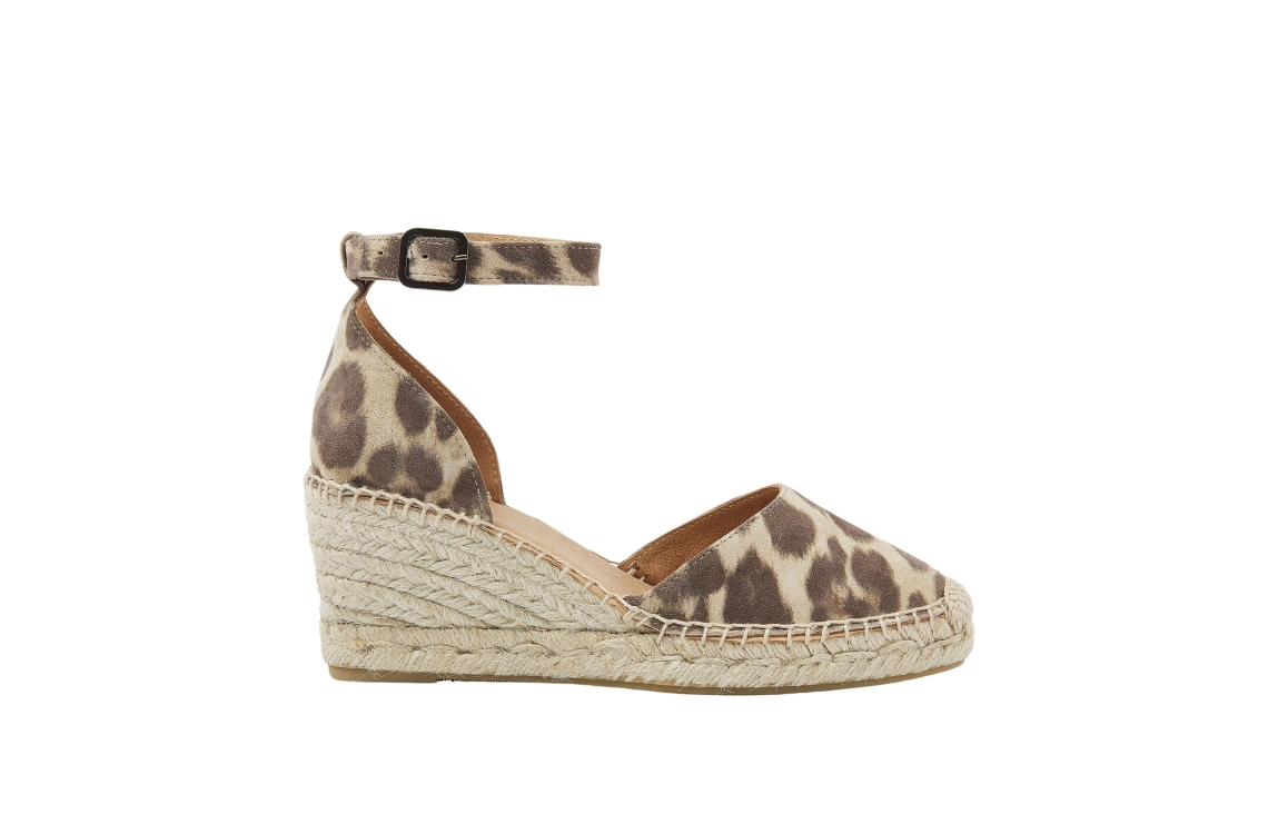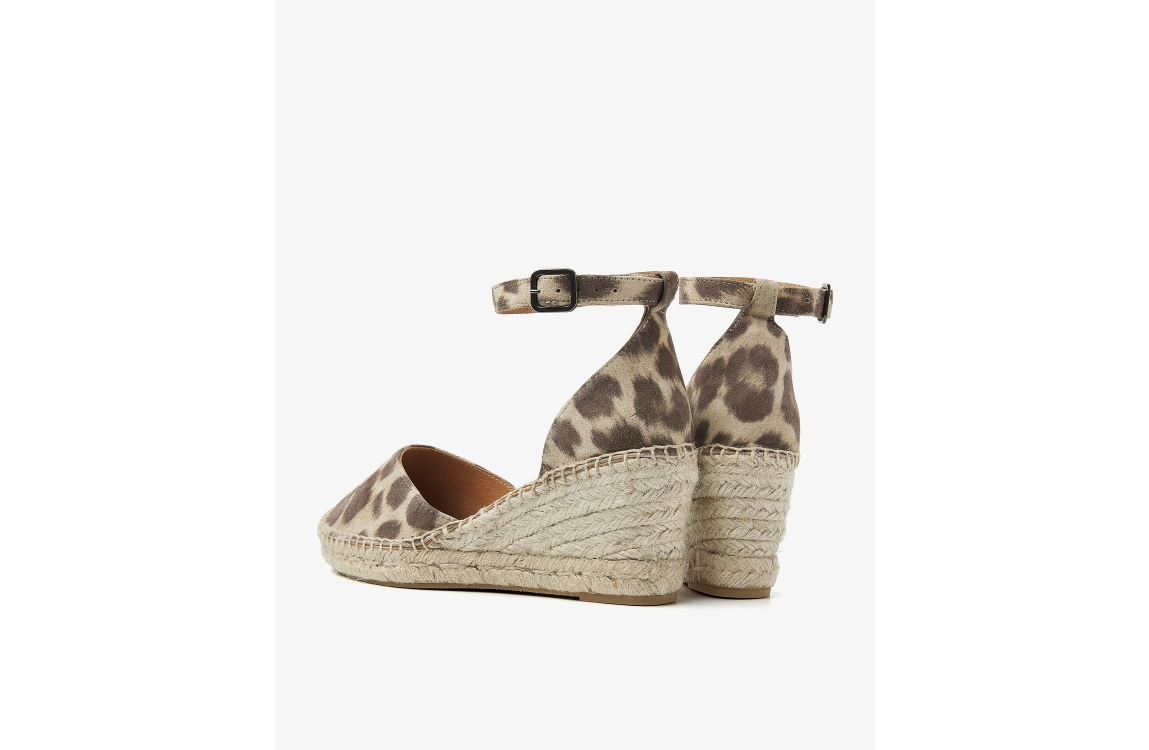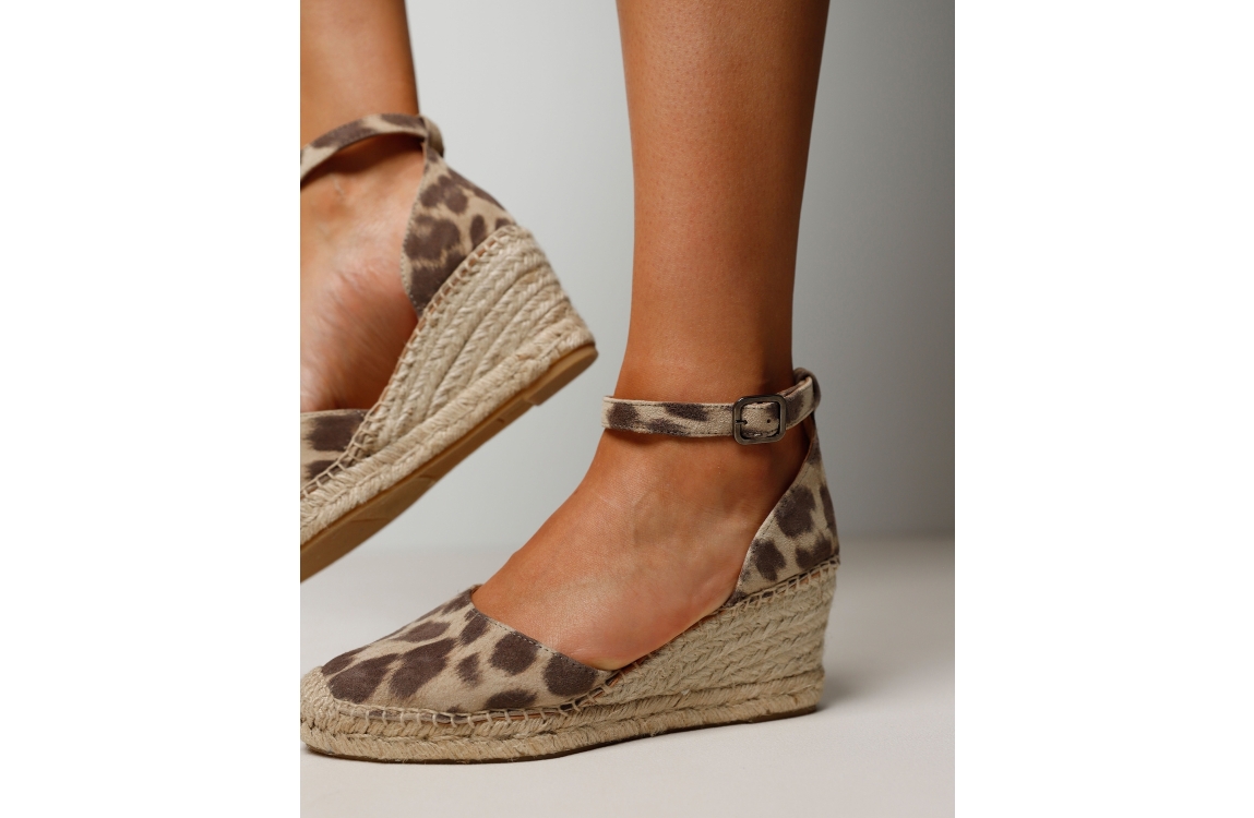 Via Vai Flora Braid 05-315 Giaguaro Brown. Deze panterprint bandschoen van Viavai sluit door middel van een gesp en heeft een sleehak.