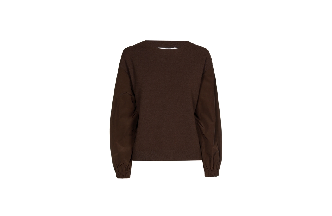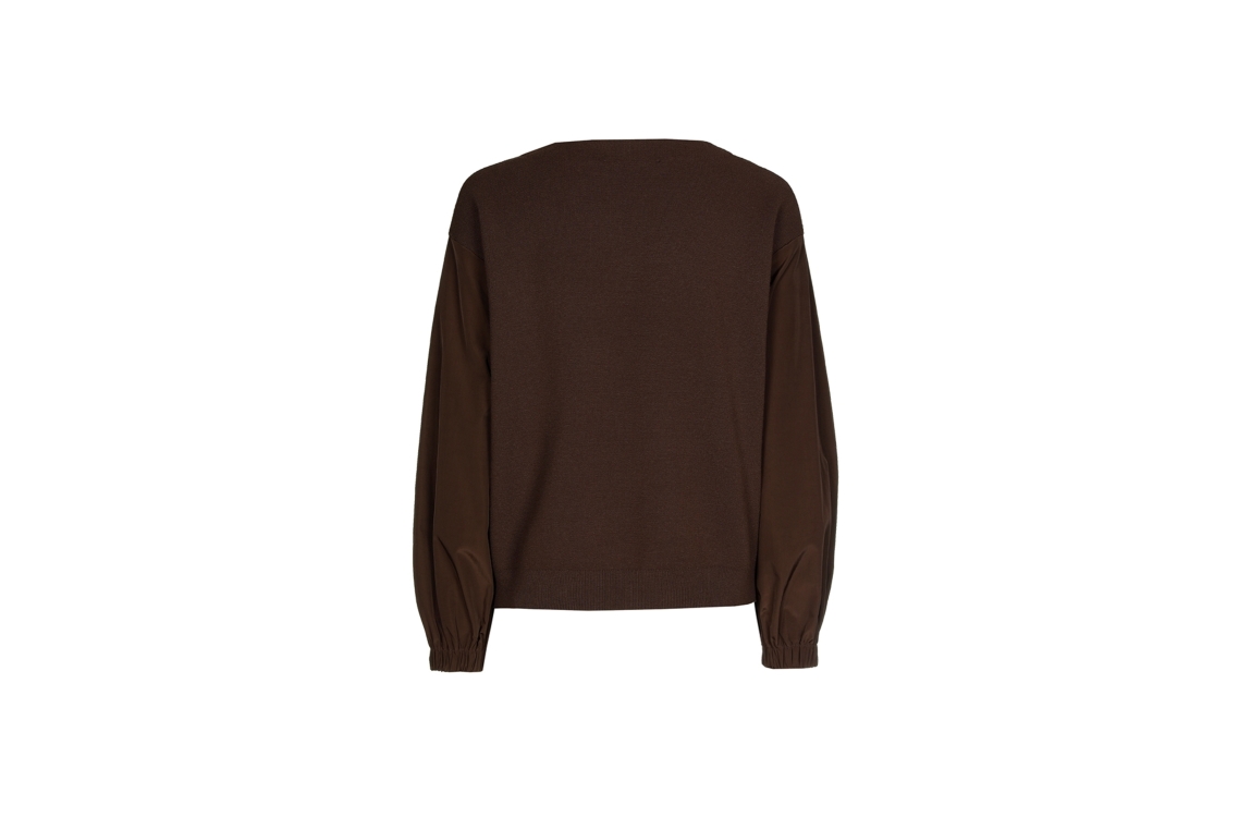 Xandres pullover Ahlem 29418-01. Dit rechtvallend bruine model is voorzien van een ronde hals en heeft lange mouwen uitgevoerd in een andere stofkwaliteit.