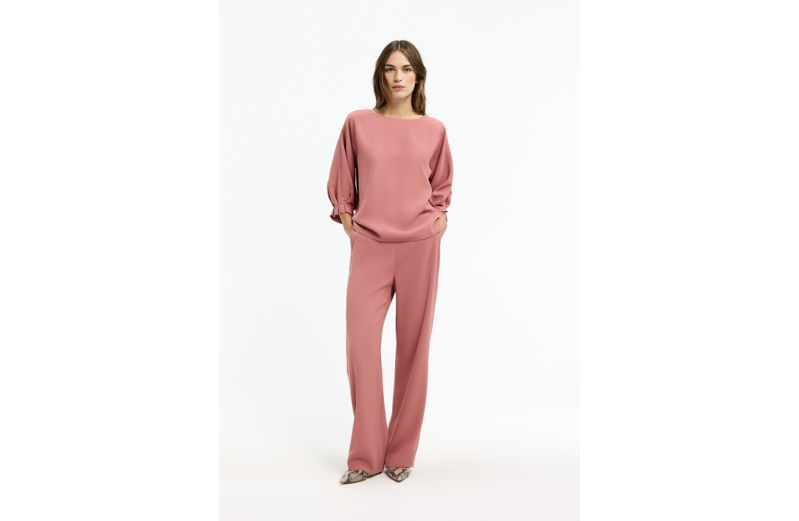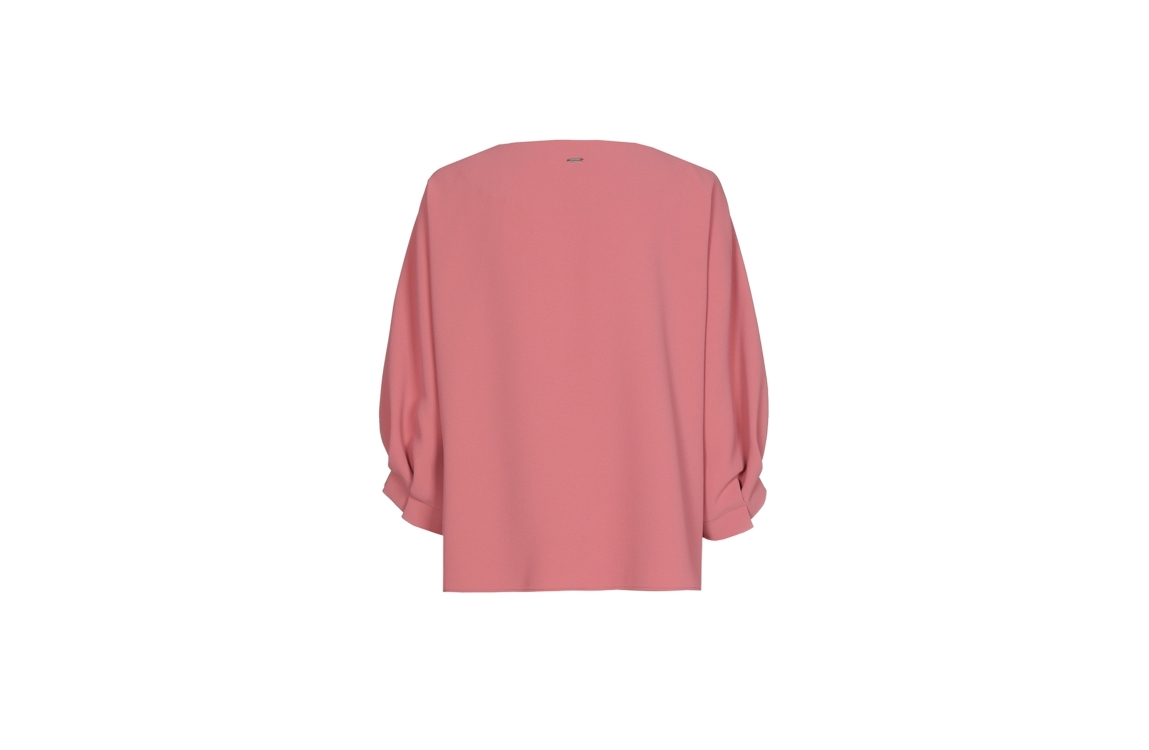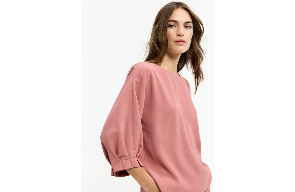 Xandres HEDWIGE 0810 rosewood. Dit soepelvallende model is voorzien van een ronde hals en driekwart mouwen. Deze roze blouse van Xandres is afgewerkt met aangesneden mouwen en een spilt in de zijnaden van de onderzijde.