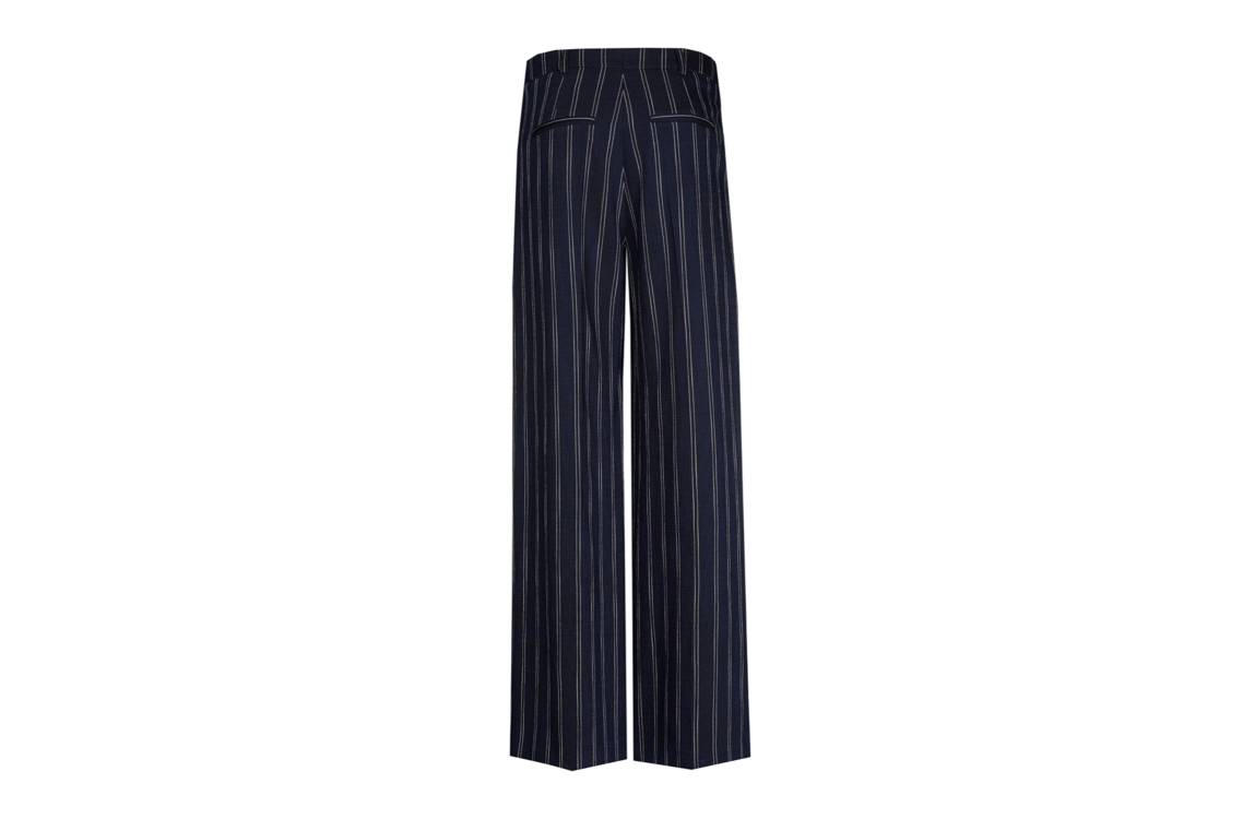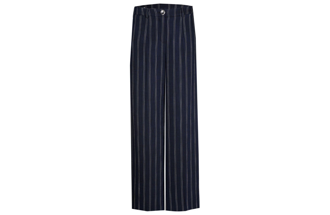 Xandres PUNCH_ 8805 navy. Dit rechtvallende model sluit door middel van een knoop en rits afgewerkt met ceintuurlussen. Deze donker blauwe broek van Xanders is all-over bewerkt een elegante krijtstreep. Dit model heeft twee steekzakken aan de voorzijde en is afgewerkt met elastiek in de achterzijde.