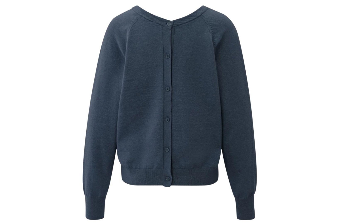 YAYA sweater 01-000494-508. Dit soepelvallende model heeft een V-hals aan zowel de voor- als achterzijde en lange mouwen. Deze blauwe sweater van YAYA is gedetailleerd met knoopsluitingen op de rug en is afgewerkt met brede, ribgebreide boorden.