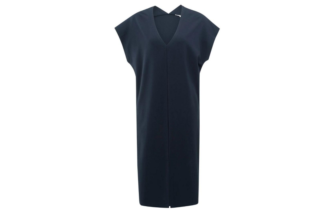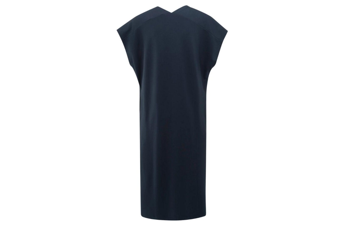 Yaya jurk 01-609179-506. Dit rechtvallend model is voorzien van een v-hals en heeft korte mouwen. Deze donkerblauwe jurk van Yaya heeft twee steekzakken en beschikt over een split aan de voorzijde.
