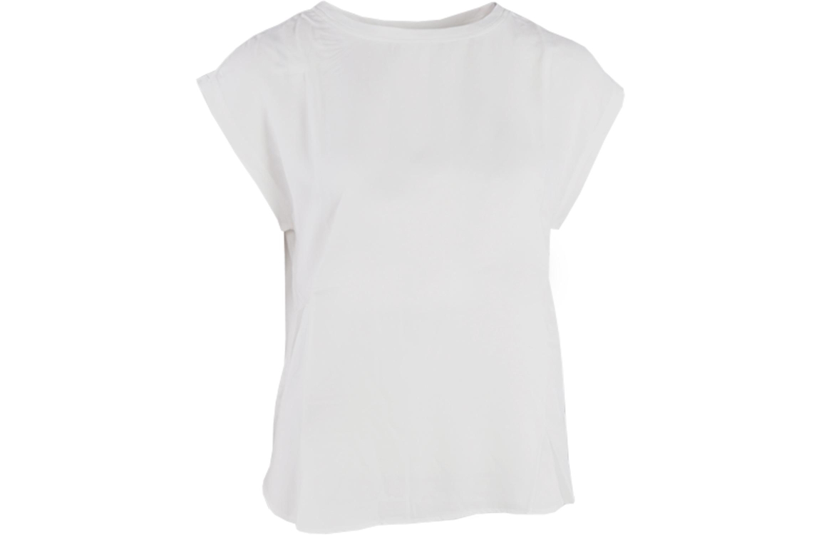 Yaya online top 01-701010N. Dit witte rechtvallende model heeft een ronde hals en korte mouwen. Deze witte top van Yaya is uitgevoerd in een fijne stretch materiaal aan de achterzijde.