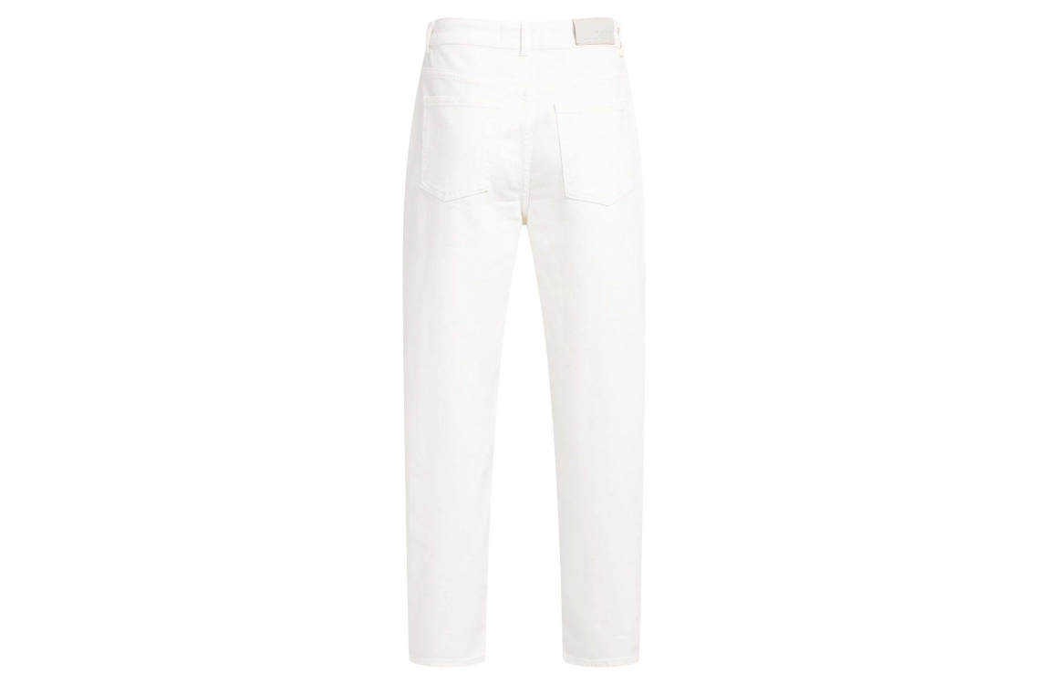 Yaya High waist barrel jeans 99050 Off white denim. Dit barrel model sluit door middel van een knoop- en ritssluiting en is voorzien van ceintuurlussen. Deze off-white denim jeans van Yaya is uitgevoerd in een 5-pocket model en is afgewerkt met tapstoelopende broekspijpen.
