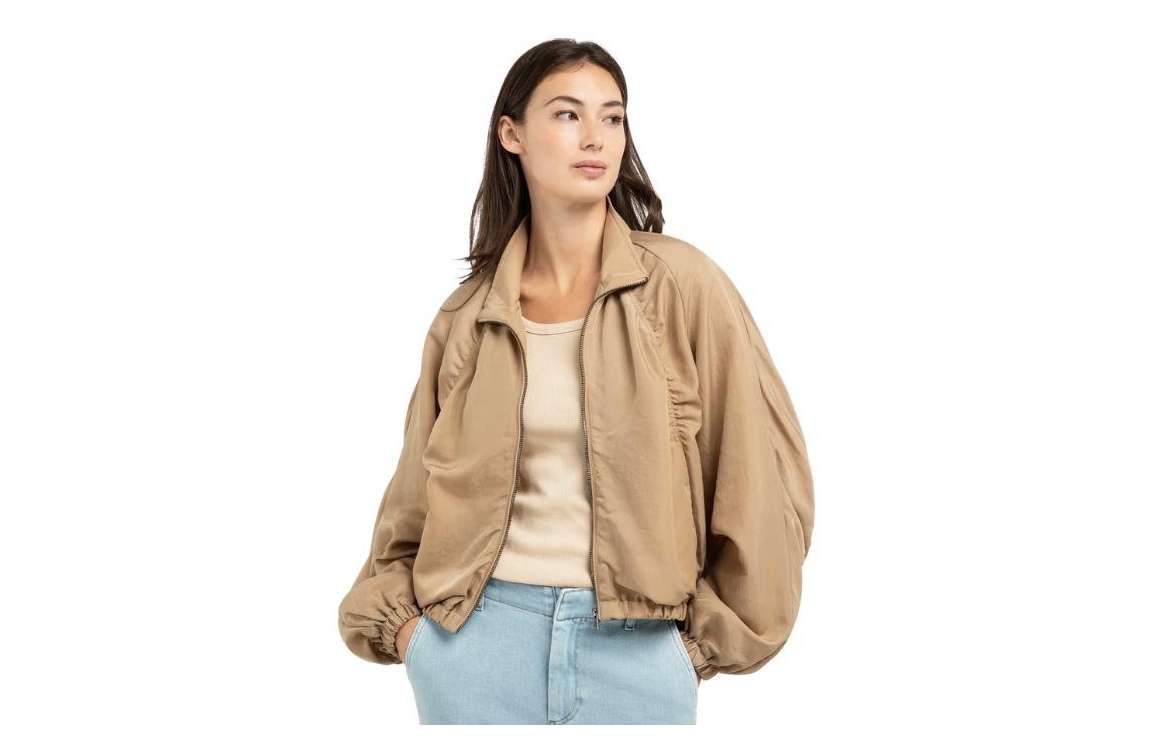 Yaya jasje 02-001072-603 990511. Dit oversized model heeft een kraag en lange mouwen. Het bruine jasje van Yaya sluit aan de voorzijde door middel van een rits en is voorzien van twee schuine steekzakken. Het model is afgewerkt met een elastische zoom.