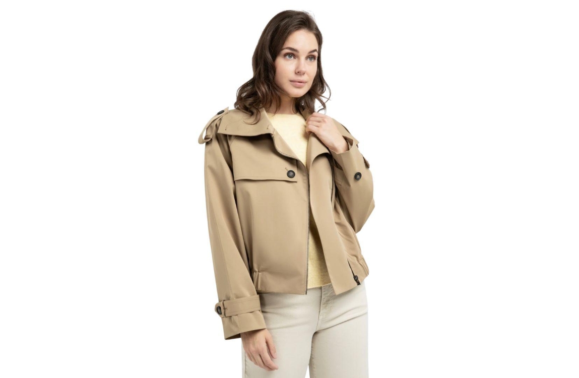 Yaya bomberjas 02-001070-602. Dit bomber model heeft een opstaande kraag, epauletten, schouderoverslag en lange mouwen. Deze khakigroene jas van Yaya is voorzien van twee steekzakken en sluit door middel van een rits. Het model is afgewerkt met een elastische zoom en is gedetailleerd met een klein label op de rug met de tekst 'Love of London Town'.