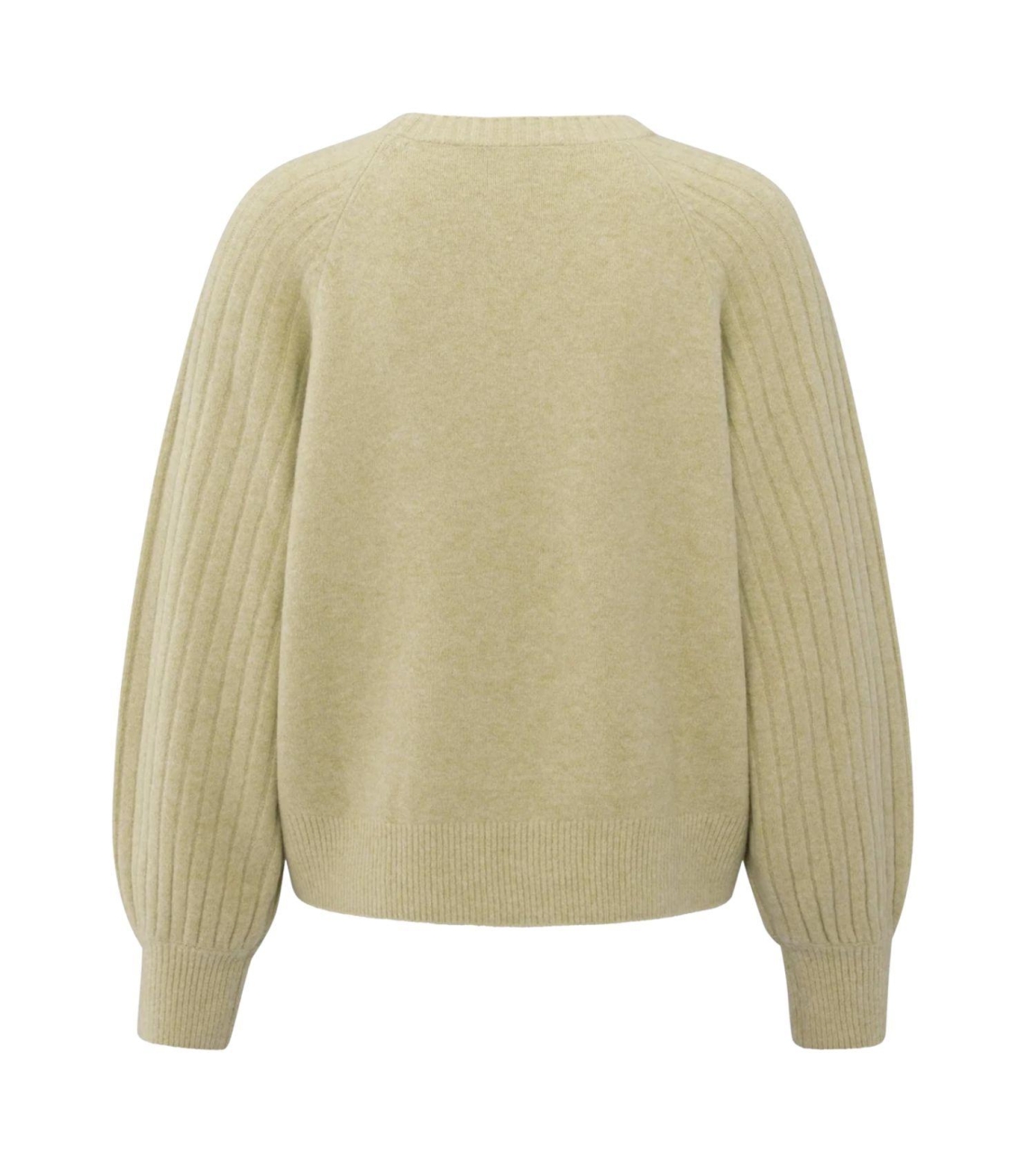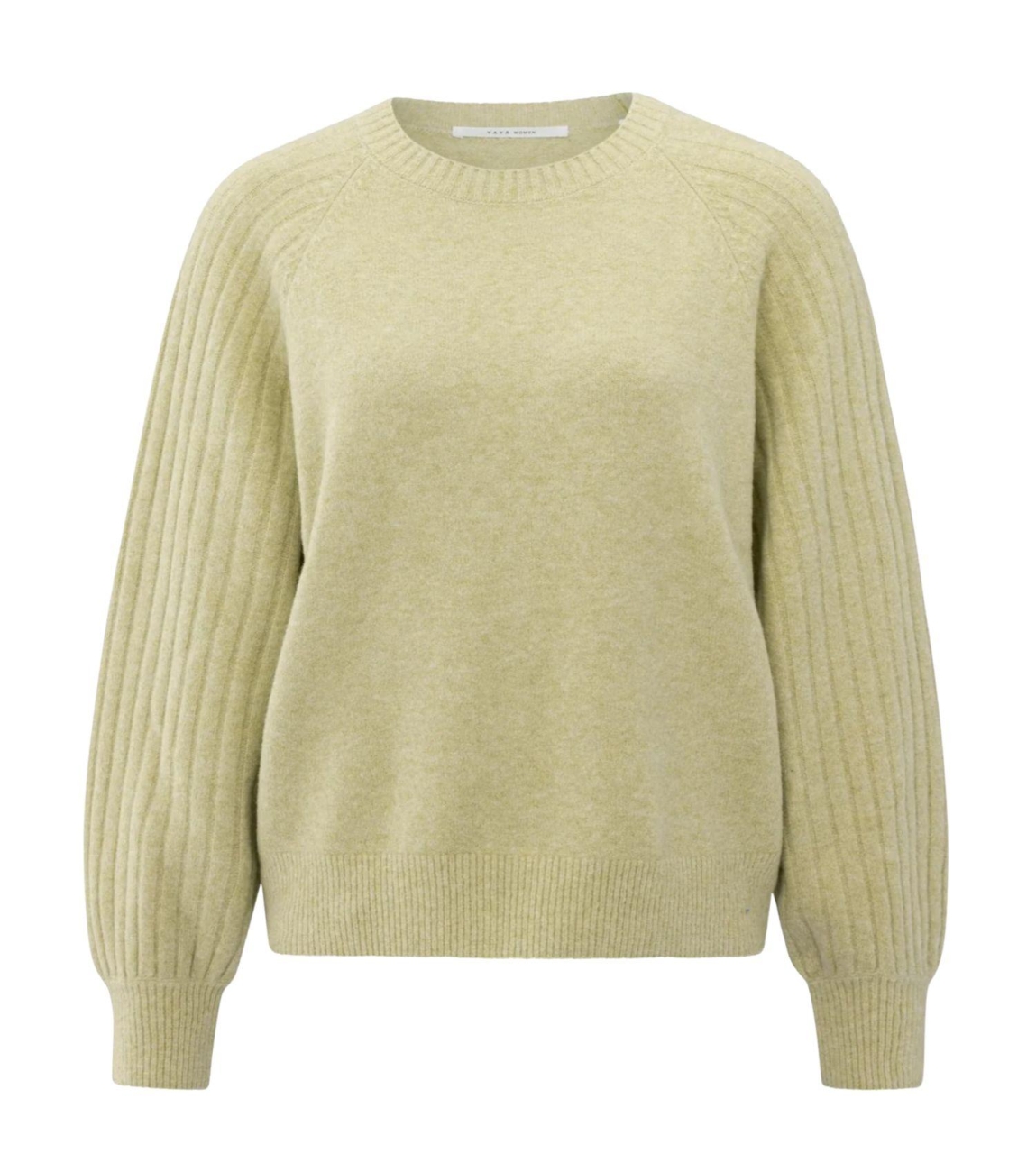 Yaya sweater 01-000410-509. Dit rechtvallende model heeft een ronde halslijn en lange mouwen. Deze lichtgroene sweater van Yaya is afgewerkt met ribgebreide mouwen en boorden.