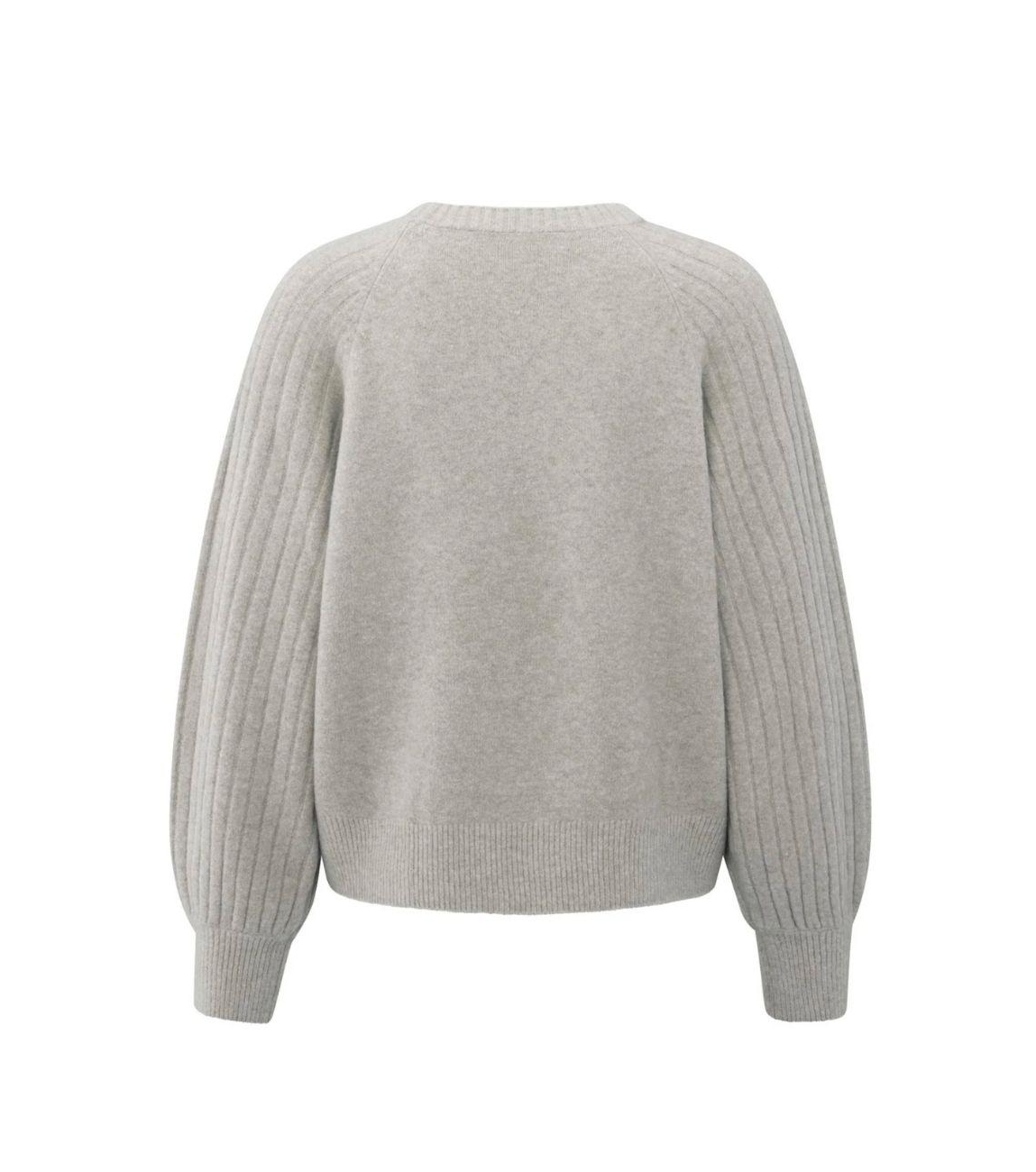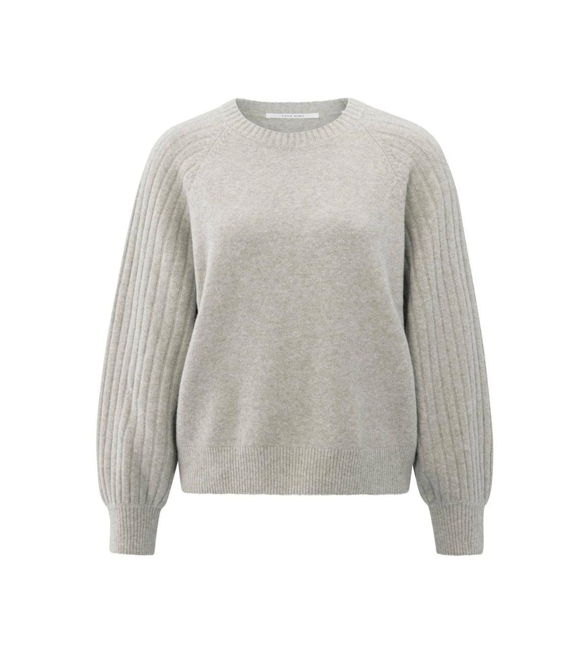 Yaya sweater 01-000410-509. Dit rechtvallend model is voorzien van een ronde hals en heeft lange ribgebreide mouwen. Deze grijze Yaya sweater is afgewerkt met brede boorden.