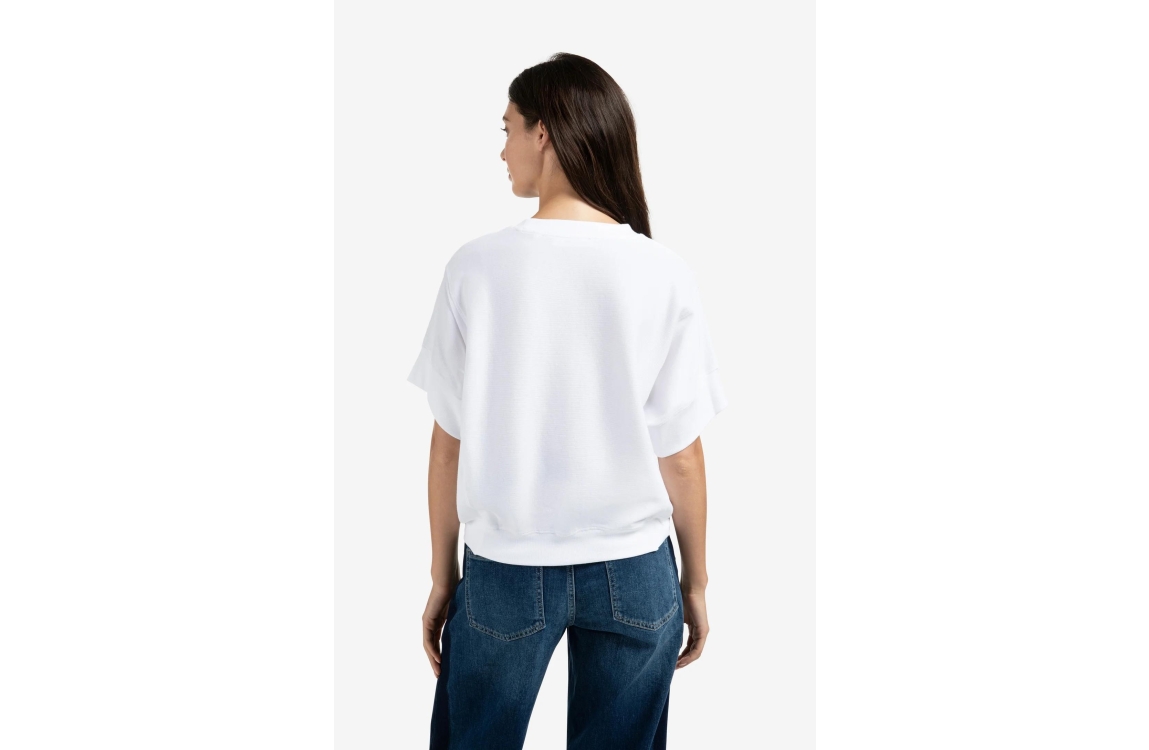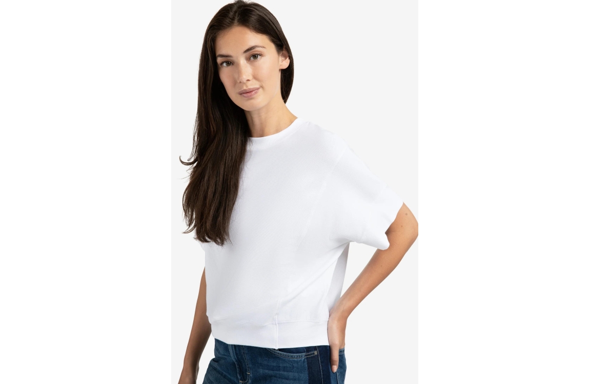 Yaya Ribbed jersey top 01-709313. Dit loose fit model heeft een ronde hals en korte mouwen. Deze witte top van Yaya is uitgevoerd in een ribstof-materiaal en beschikt over elastische boorden aan de onderzijde.